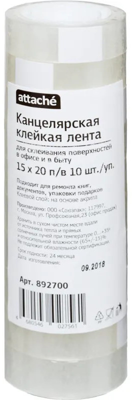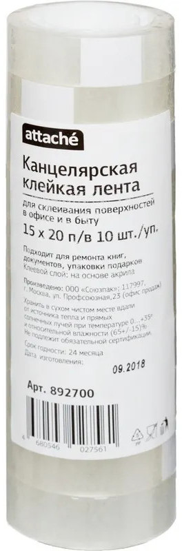 💳 Оплатить за товар можно при получении 🇰🇿 Есть бесплатная доставка по Казахстану от 1 дня 🎁 Копите бонусы с каждой покупки Канцелярская клейкая лента Attache разработана специально для канцелярских нужд.Подойдет для решения большинства задач в офисе, школе и дома, связанных с упаковкой, запечатыванием, мелким ремонтом и творчеством.Имеет гарантированную длину 20 м и ширину 15 мм и обладает высокой клеящей способностью. Отличается прозрачностью и прочностью 35 мкм. Имеет специальное покрытие, благодаря которому разматывается равномерно и легко.Упаковка - термоусадка из 10 роликов.Канцелярская клейкая лента Attache проста и удобна в использовании. |