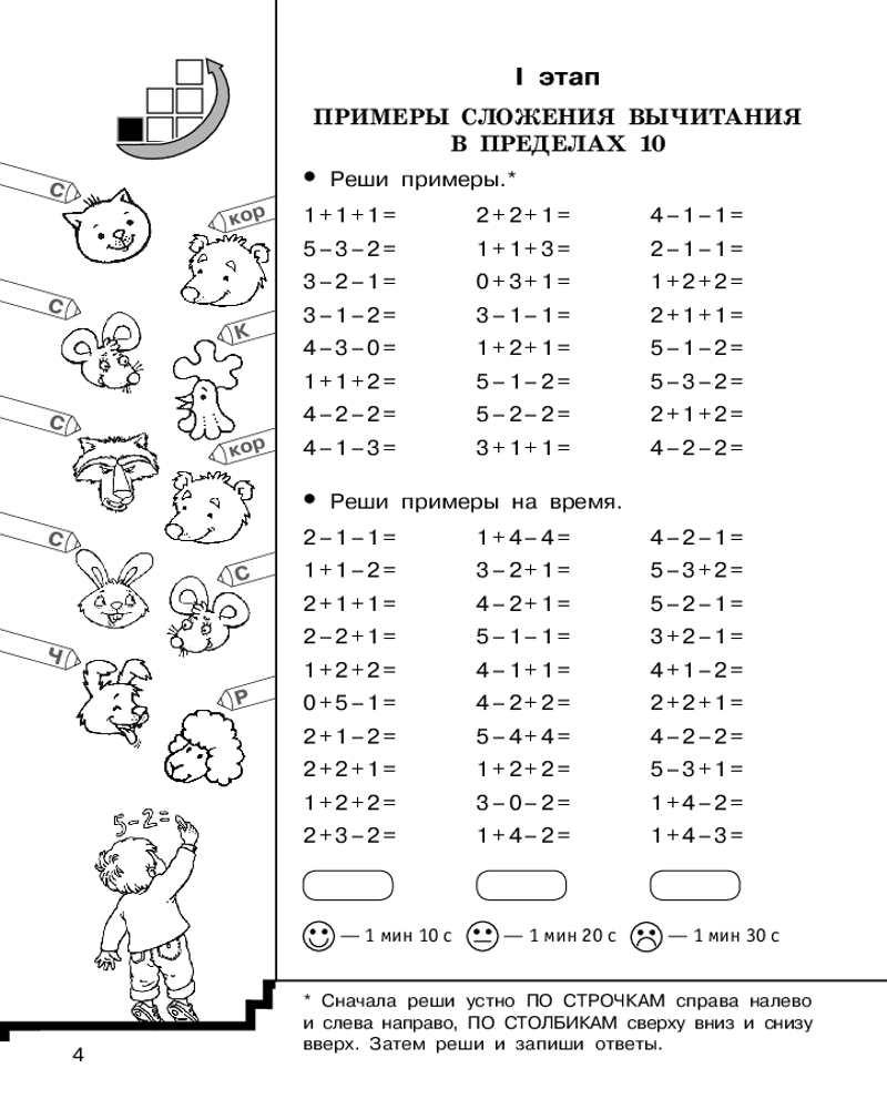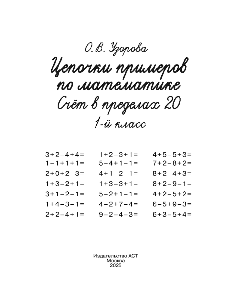 Цепочки примеров по математике. Счёт в пределах 20. 1 класс+14