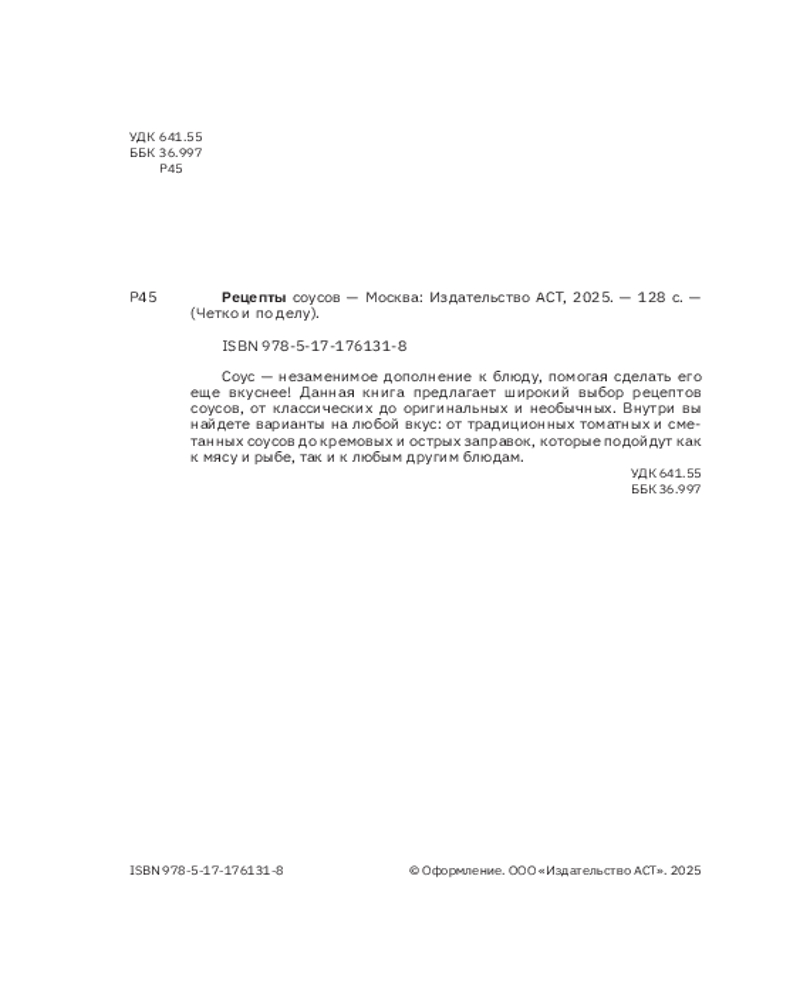 💳 Оплатить за товар можно при получении 🇰🇿 Есть бесплатная доставка по Казахстану от 1 дня 🎁 Копите бонусы с каждой покупки Серия: Четко и по делу Соус — незаменимое дополнение к блюду, помогая сделать его еще вкуснее! Данная книга предлагает широкий выбор рецептов соусов, от классических до оригинальных и необычных. Внутри вы найдете варианты на любой вкус: от традиционных томатных и сметанных соусов до кремовых и острых заправок, которые подойдут как к мясу и рыбе, так и к любым другим блюдам. |