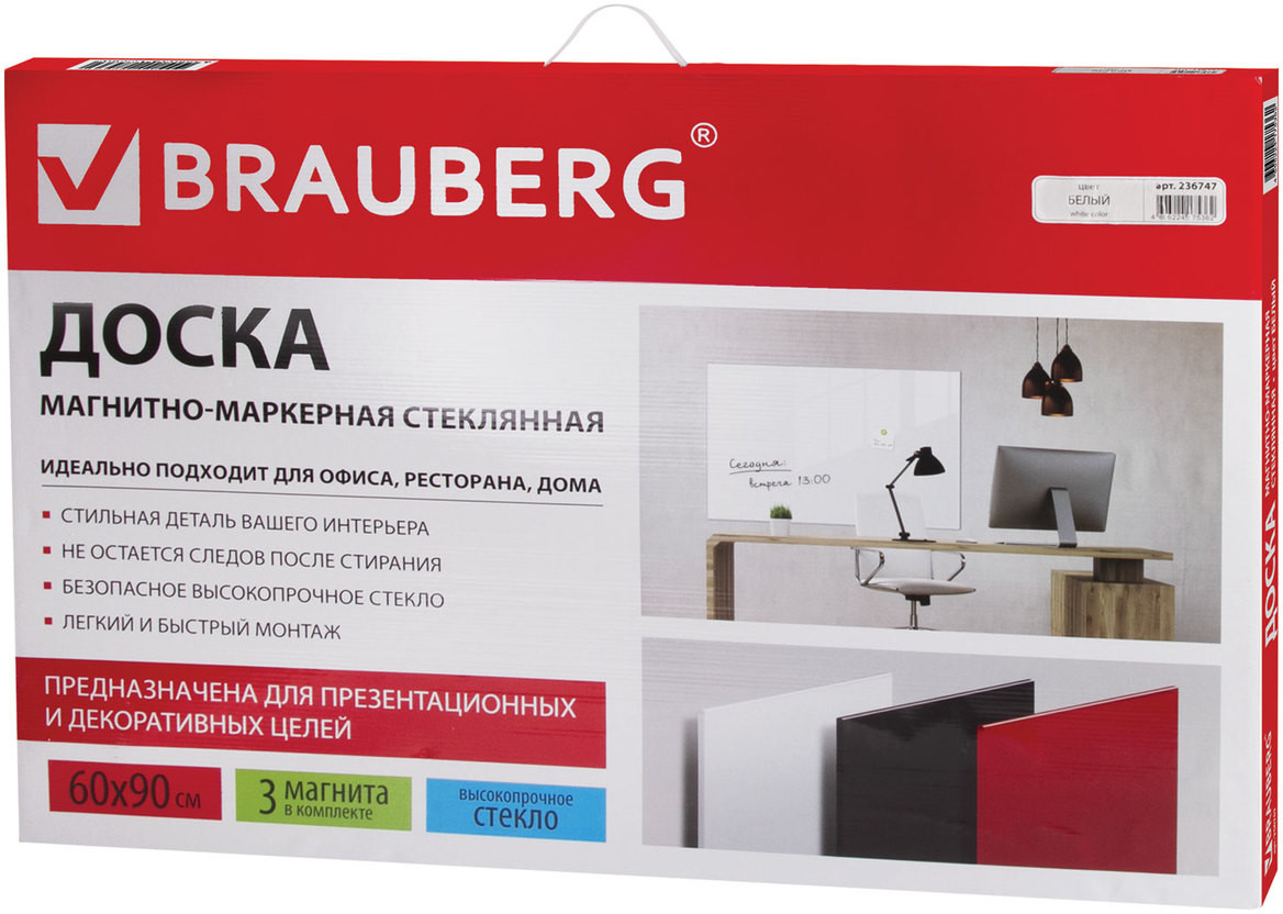 Стеклянная магнитно-маркерная доска Brauberg — это современная альтернатива обычным магнитно-маркерным доскам. Позволяет писать маркерами и прикреплять листы.