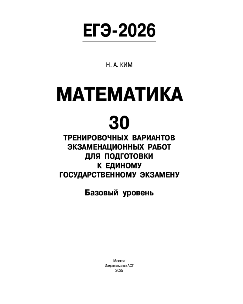 ЕГЭ-2026. Математика. 30 тренировочных вариантов экзаменационных работ для подготовки к единому государственному экзамену. Базовый уровень+106