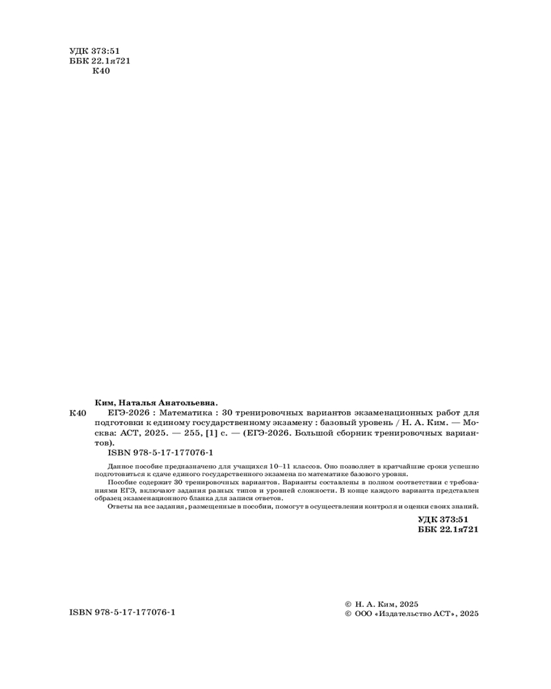 💳 Оплатить за товар можно при получении 🇰🇿 Есть бесплатная доставка по Казахстану от 1 дня 🎁 Копите бонусы с каждой покупки Серия: ЕГЭ-2026. Большой сборник тренировочных вариантов Данное пособие предназначено для учащихся 10–11 классов. Оно позволяет в кратчайшие сроки успешно подготовиться к сдаче единого государственного экзамена по математике базового уровня. Пособие содержит 30 тренировочных вариантов. Варианты составлены в полном соответствии с требованиями ЕГЭ, включают задания разных типов и уровней сложности. В конце каждого варианта представлен образец экзаменационного бланка для записи ответов. Ответы на все задания, размещенные в пособии, помогут в осуществлении контроля и оценки своих знаний. |