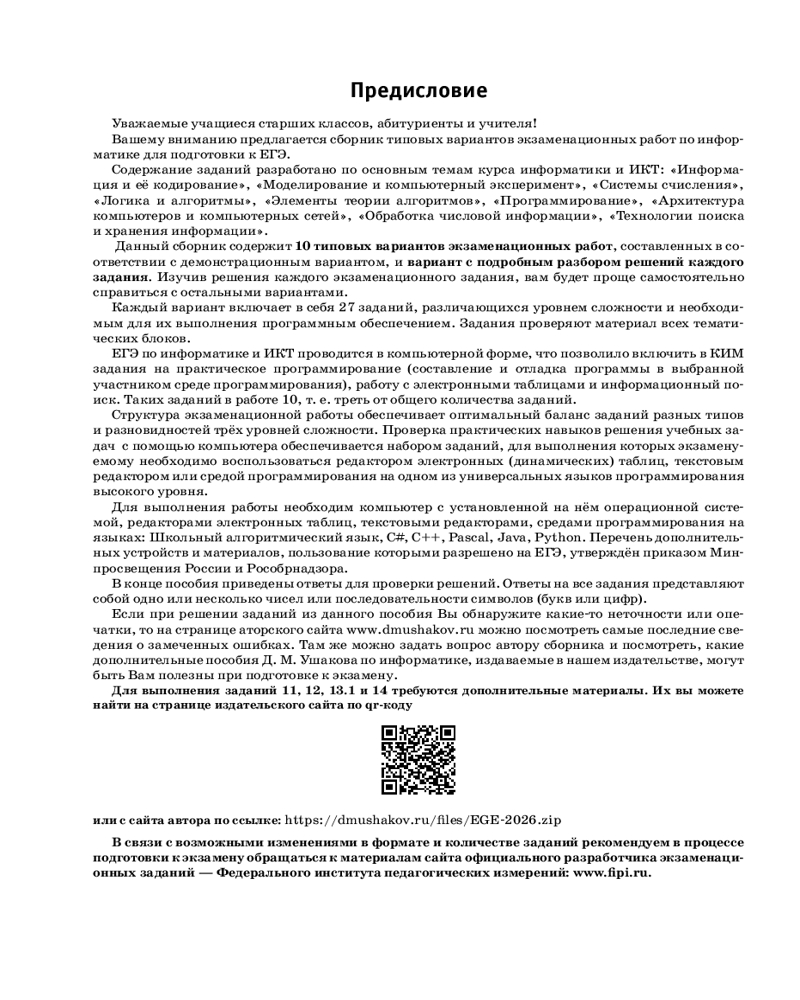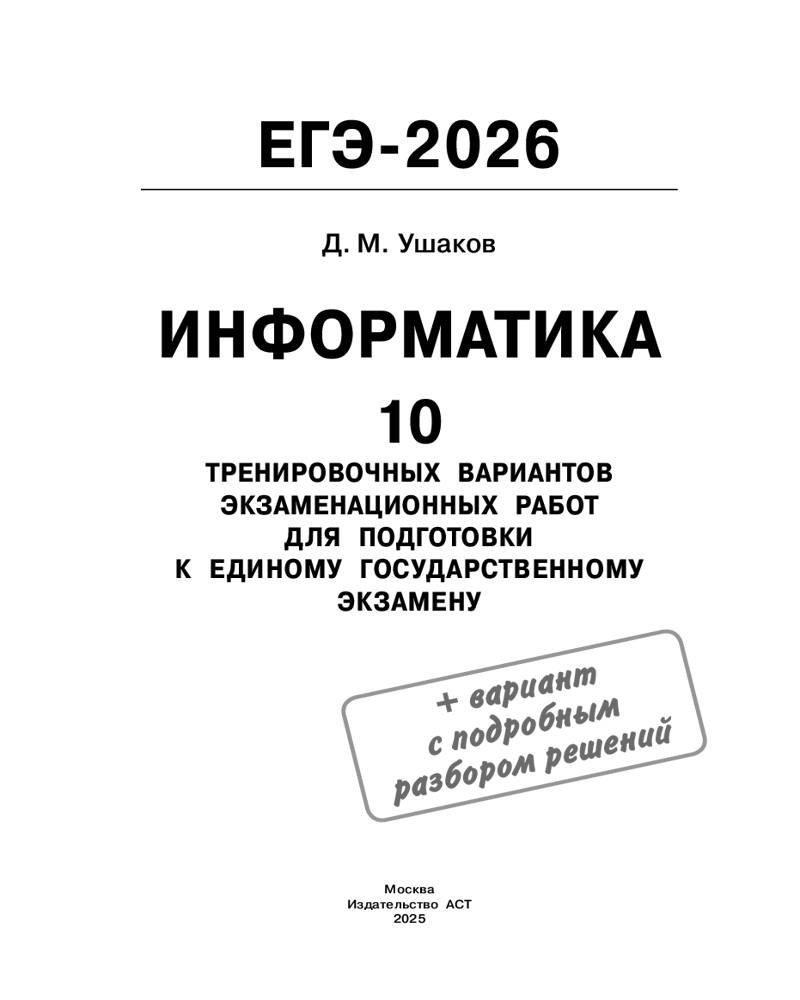 ЕГЭ-2026. Информатика. 10 тренировочных вариантов экзаменационных работ для подготовки к единому государственному экзамену+91