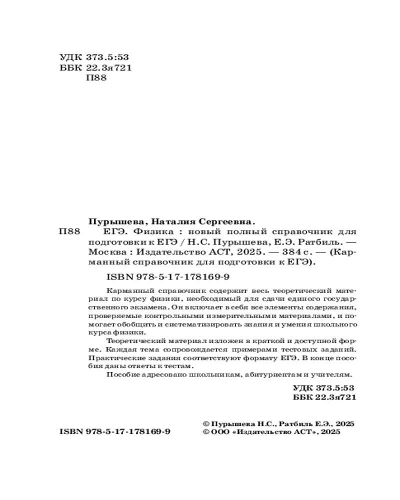 💳 Оплатить за товар можно при получении 🇰🇿 Есть бесплатная доставка по Казахстану от 1 дня 🎁 Копите бонусы с каждой покупки Серия: Карманный справочник для подготовки к ЕГЭ Карманный справочник содержит весь теоретический материал по курсу физики, необходимый для сдачи единого государственного экзамена. Он включает в себя все элементы содержания, проверяемые контрольными измерительными материалами, и помогает обобщить и систематизировать знания и умения школьного курса физики. Теоретический материал изложен в краткой и доступной форме. Каждая тема сопровождается примерами тестовых заданий. Практические задания соответствуют формату ЕГЭ. В конце пособия даны ответы к тестам. Пособие адресовано школьникам, абитуриентам и учителям. |