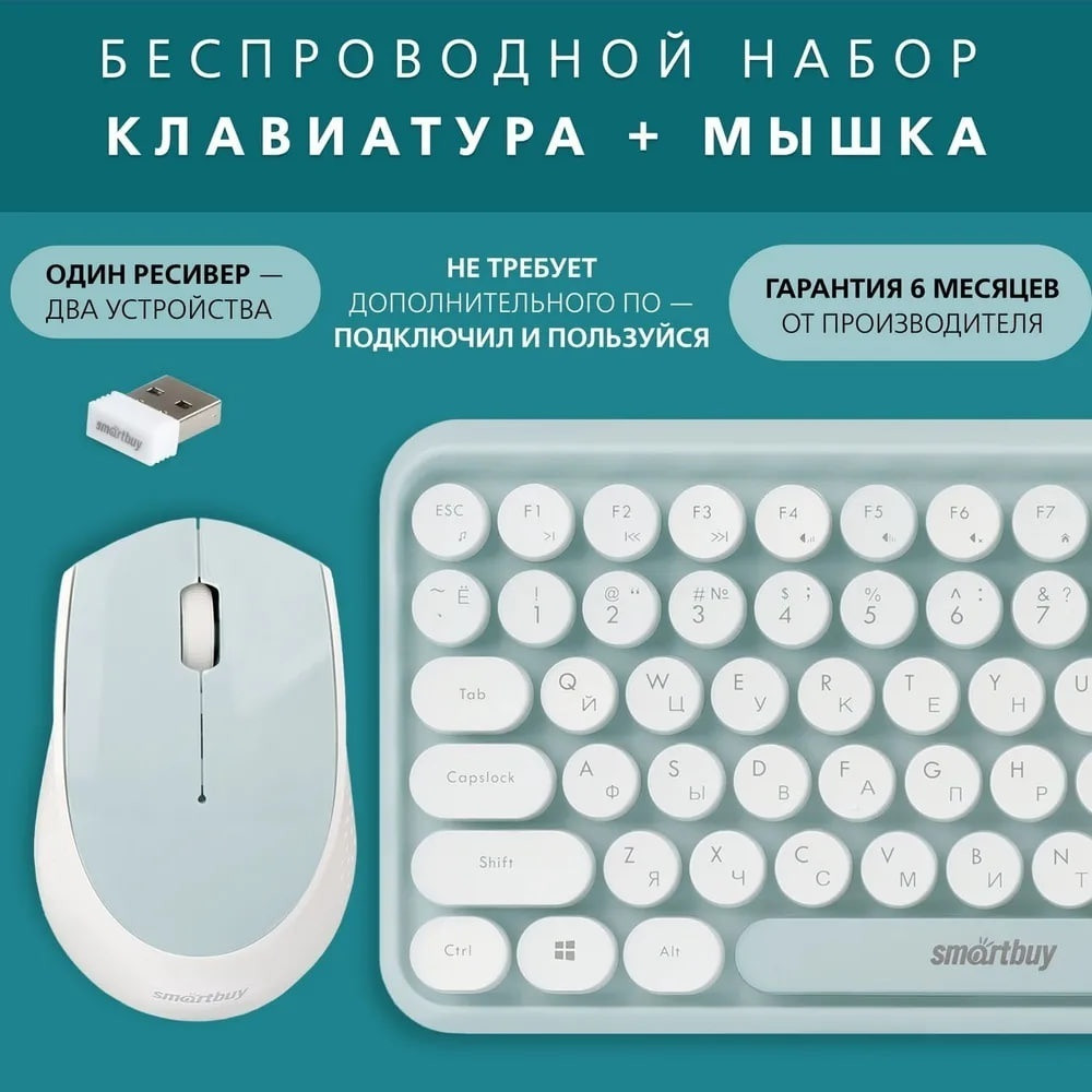 Представленная модель подходит для использования как правой, так и левой руками, в чем заключается дополнительное преимущество набора из клавиатуры и мыши Smartbuy SBC-626376AG. Компактные размеры, беспроводное подключение и большой ресурс использования (до 10 млн нажатий) — главные достоинства комплекта.