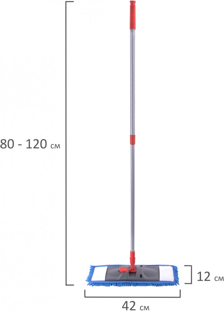 Швабра с телескопическим черенком длиной 80-120 см, плоским флаундером и насадкой из ворсистой микрофибры (синель/букли) станет незаменимой помощницей при создании чистоты в офисе или дома. Легкая, удобная в пользовании, делает уборку простой и приятной.