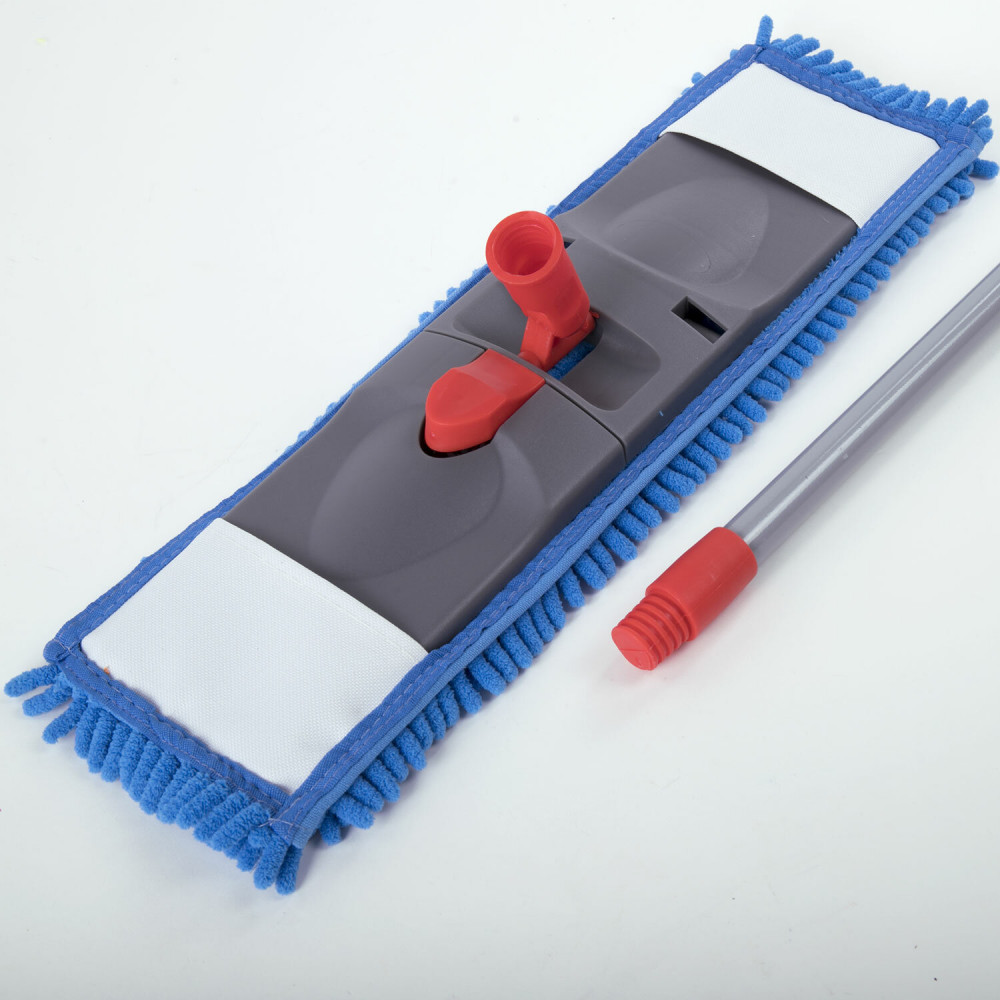 Пол быстро становится идеально чистым, поворотный пластиковый флаундер (держатель швабры) может попасть в самые труднодоступные места, а прилагаемая в комплекте высококачественная насадка МОП из микрофибры проникает в микронеровности пола, вымывая оттуда даже невидимые загрязнения. После каждого использования микрофибру необходимо вымыть и просушить.