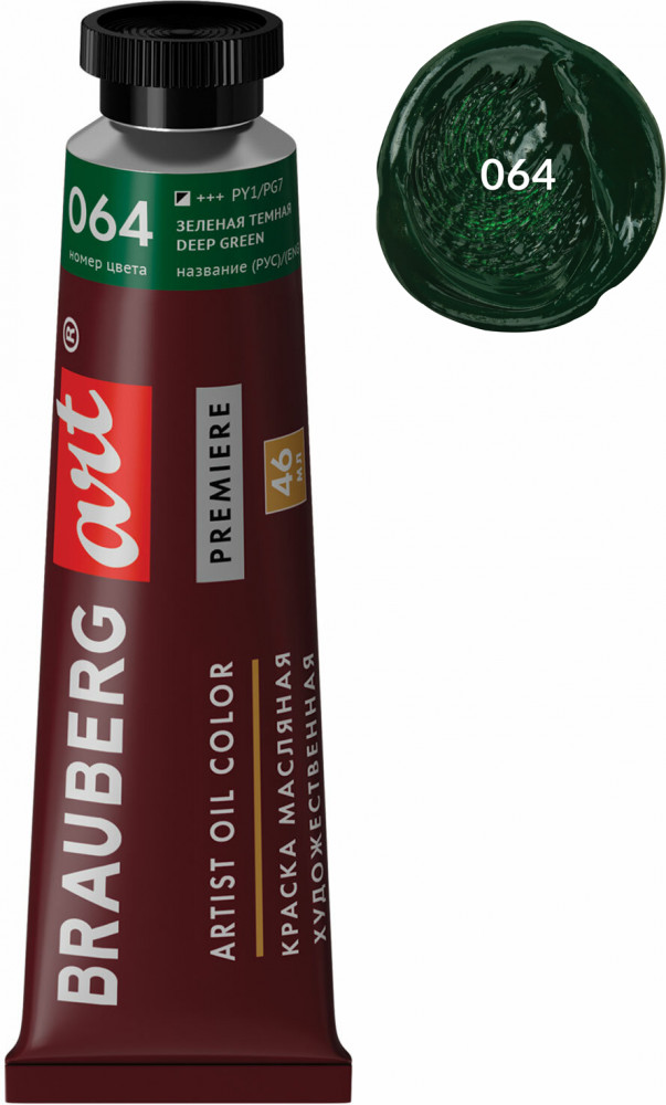 Brauberg Краска масляная художественная, 064 Зеленая темная