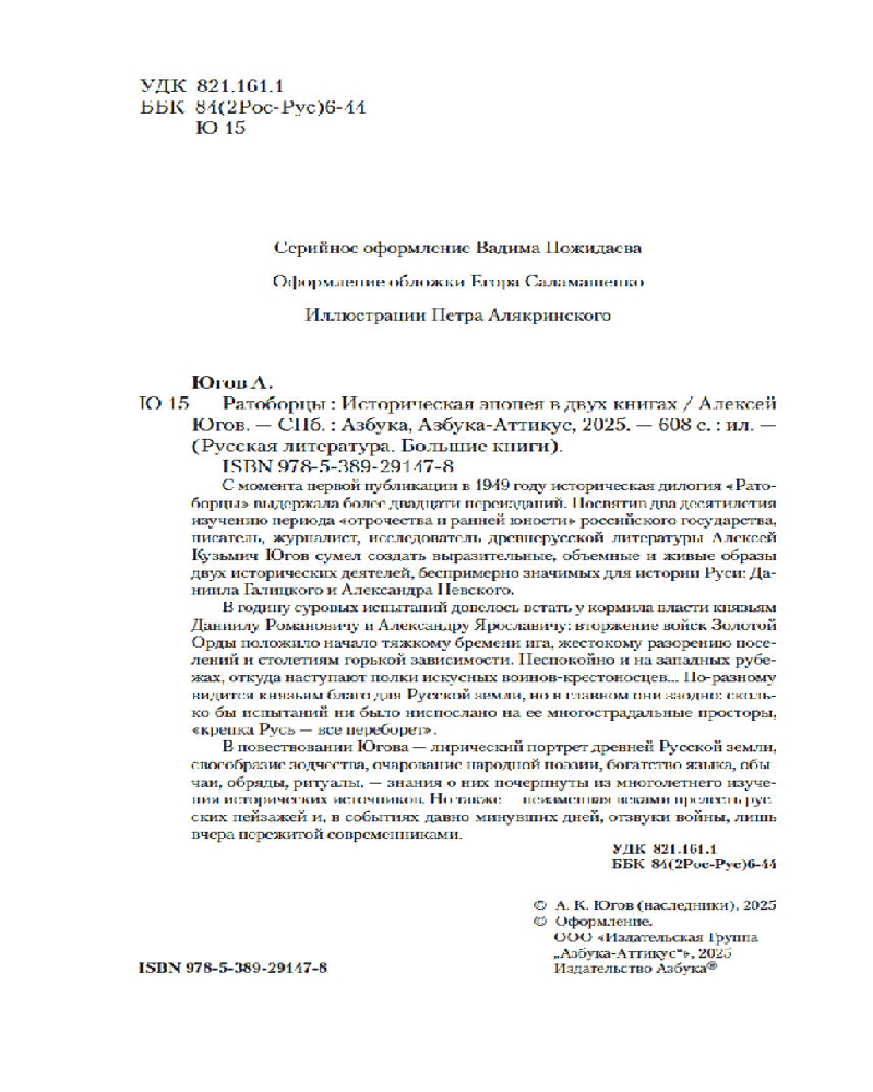 💳 Оплатить за товар можно при получении 🇰🇿 Есть бесплатная доставка по Казахстану от 1 дня 🎁 Копите бонусы с каждой покупки Серия: Русская литература. Большие книги С момента первой публикации в 1949 году историческая дилогия «Ратоборцы» выдержала более двадцати переизданий. Посвятив два десятилетия изучению периода «отрочества и ранней юности» российского государства, писатель, журналист, исследователь древнерусской литературы Алексей Кузьмич Югов сумел создать выразительные, объемные и живые образы двух исторических деятелей, беспримерно значимых для истории Руси: Даниила Галицкого и Александра Невского. |