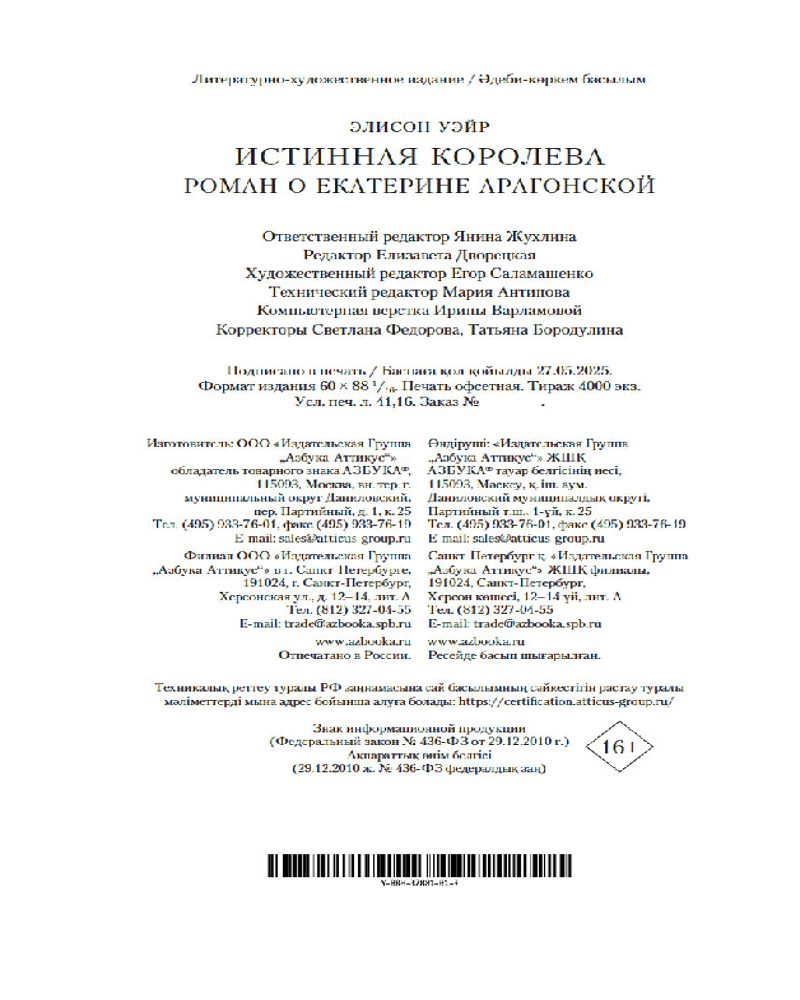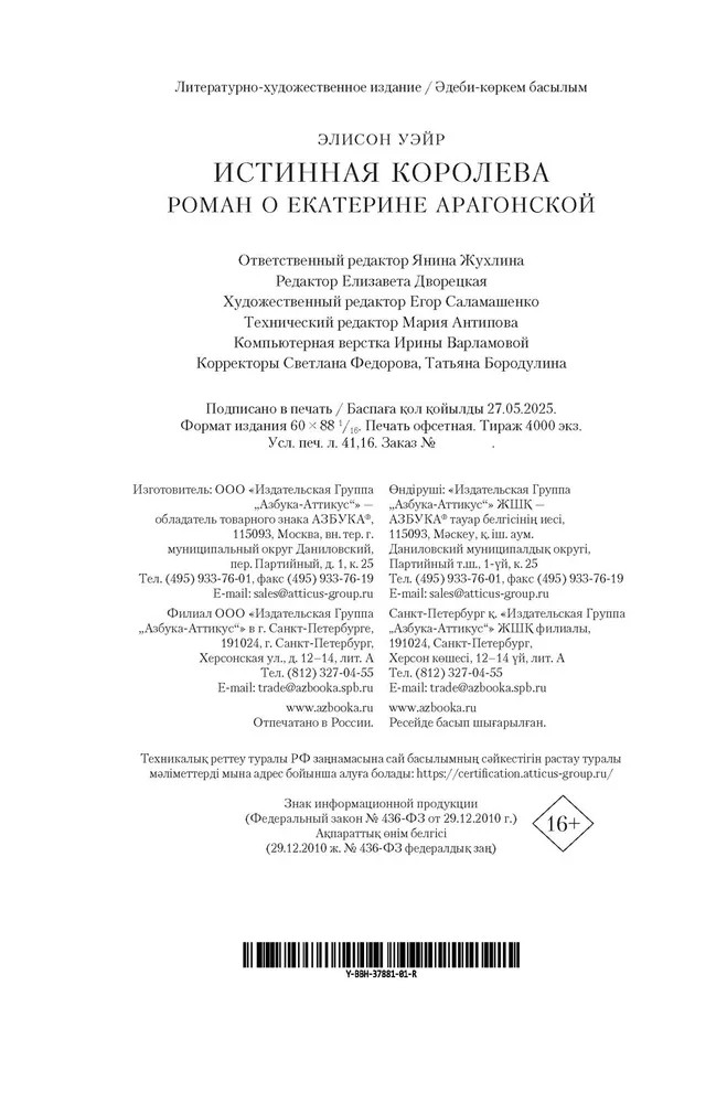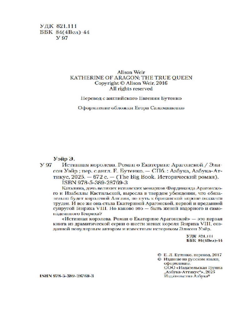💳 Оплатить за товар можно при получении 🇰🇿 Есть бесплатная доставка по Казахстану от 1 дня 🎁 Копите бонусы с каждой покупки Серия: The Big Book. Исторический роман Каталина, дочь великих испанских монархов Фердинанда Арагонского и Изабеллы Кастильской, выросла в твердом убеждении, что обязательно будет королевой Англии, но путь к британской короне оказался труден. И все же она стала Екатериной Арагонской, первой и преданной супругой Генриха VIII. Но каково это — быть женой вздорного и самонадеянного Генриха? |