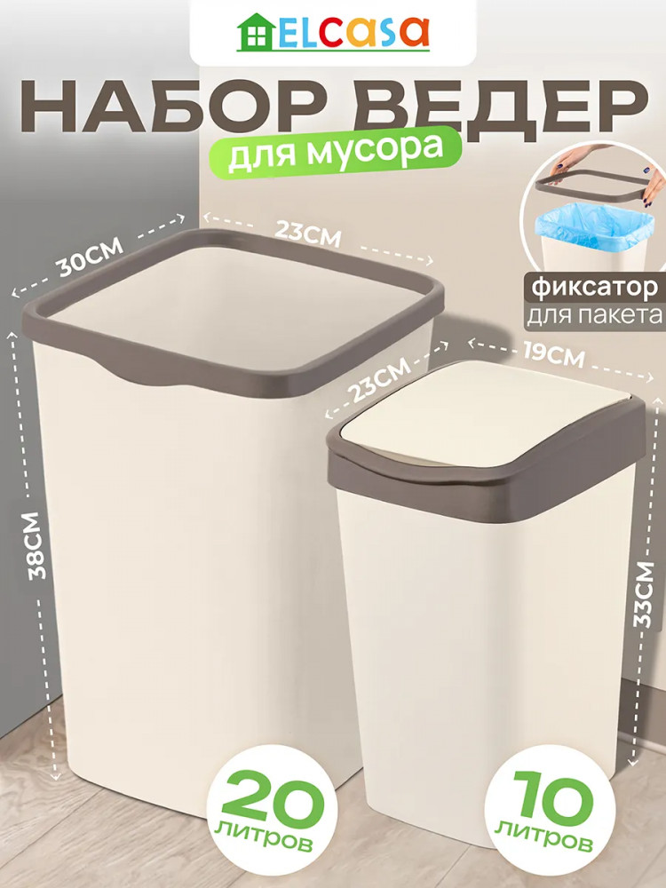 Набор 2 вёдер для мусора от бренда El Casa поможет поддерживать чистоту в вашем доме, офисе или на улице. Каждое мусорное ведро прямоугольной формы выполнено из полипропилена. Этот вид пластика считается наиболее безопасным, так как не содержит бисфенол А и не выделяет вредных веществ. Дизайн представляет собой стильное сочетание белого и серого цветов.