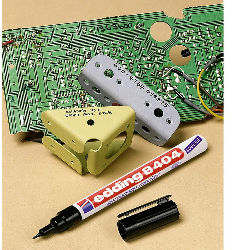 💳 Оплатить за товар можно при получении 🇰🇿 Есть бесплатная доставка по Казахстану от 1 дня 🎁 Копите бонусы с каждой покупки Маркер аэрокосмический Edding 8404 с чернилами черного цвета предназначен для маркировки различных деталей в электронике и приборостроении, в том числе в космической отрасли. Этот маркер был разработан по заказу ''Бритиш Аэроспейс'' для использования внутри космических кораблей и удовлетворяет всем требованиям безопасности. Маркер Edding 8404 также может использоваться при нанесении маркировки на любую гладкую поверхность (пластик, стекло, картон, бумага). Легкий пластиковый корпус и тонкий наконечник круглой формы, позволяют аккуратно наносить рисунок или надпись. Толщина линии письма — 0,75 мм аэрокосмического маркера также предназначена для высокоточной маркировки. Пигментные чернила маркера Edding E 8404 быстро сохнут, не чувствительны к свету и влаге, нетоксичны, устойчивы ко многим растворителям, не вызывают окисление (коррозию) поверхности, на которую нанесены. Маркировка после высыхания не крошится и не отслаивается от поверхности. Надпись, сделанная с помощью аэрокосмического маркера не выдерживает кипячение. Диапазон температур при нанесении маркировки −20 до 40 градусов Цельсия. Максимальная температура при эксплуатации маркировки 100 градусов Цельсия. Предостережение: плотно закрывайте колпачок после применения, держите маркер вдали от огня и прямых солнечных лучей. |