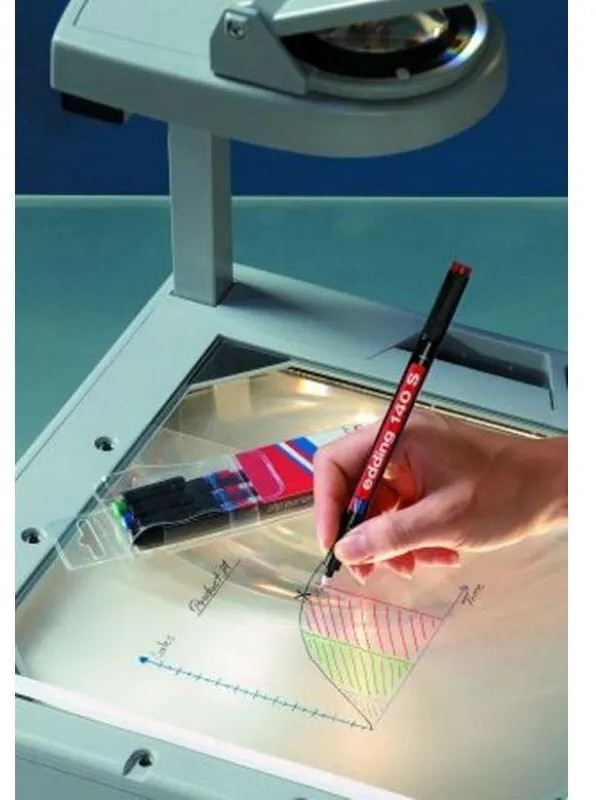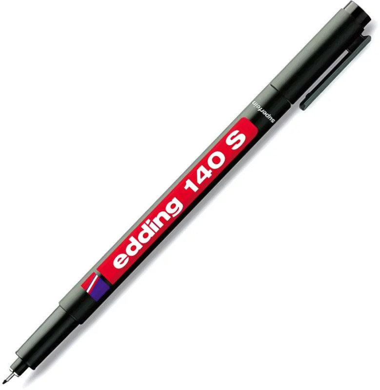Маркер Edding Е140S для проекторных пленок и глянцевых поверхностей с чернилами черного цвета подходит для работы с прозрачными синтетическими пленками, которые используются в презентационных проекторах, и прочие деликатные поверхности. Обеспечивает четкое и яркое изображение при увеличении. Чернила быстросохнущие и влагостойкие. Наконечник круглый, не царапает пленочную поверхность, пишущий узел спроектирован таким образом, что при нанесении чернил на поверхность не требуется нажатия на маркер. Толщина линии 0,3 мм. При необходимости надписи и рисунки корректируются или удаляются полностью спиртосодержащим раствором. Диапазон рабочих температур: от −15 до 40 градусов Цельсия. Корпус маркера изготовлен из прочного пластика. Удобный колпачок с клипом фиксирует маркер Edding E140 S на одежде и позволит иметь его всегда под рукой. Специальный состав чернил не разъедает пленку при хранении. Надпись не смывается водой, устойчива к выгоранию и истиранию. Тонкий наконечник перманентного маркера позволяет подписывать очень мелкие детали, а также наносить надписи на кабели. Предостережение: плотно закрывайте колпачок после применения, держать маркер вдали от огня и прямых солнечных лучей.