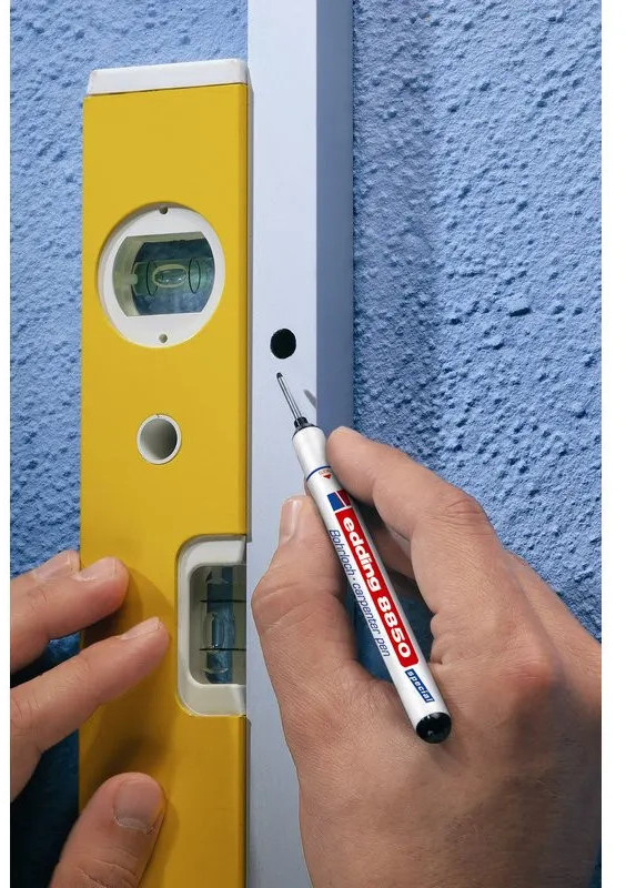 💳 Оплатить за товар можно при получении 🇰🇿 Есть бесплатная доставка по Казахстану от 1 дня 🎁 Копите бонусы с каждой покупки Маркер промышленный Edding E-8850 для труднодоступных мест идеально подходит для нанесения маркировки для разметки позиций для сверления под крепеж, под электропроводку благодаря специально спроектированному очень длинному и тонкому пишущему узлу длиной 20 мм и тонкому круглому наконечнику. Корпус специального промышленного маркера для отверстий и труднодоступных мест изготовлен из прочного пластика. Активно используется при сборке изделий на объекте, маркировки труднодоступных мест. При сборке мебели, шкафов-купе иногда мастеру требуется сверлить отверстия уже при частично собранном изделии. Обычным карандашом маркировку уже не сделать, а разметка перед сверлением необходима, в таких случаях рекомендуется использовать маркер Edding E8850. Маркер Edding E 8850 подходит для работ по следующим поверхностям: металлу, дереву, стеклу, картону, пластику, керамике и т. д. Поверхности для маркировки должны быть сухие и чистые, без пыли. Пишущий узел маркера изготовлен так, что при письме не требует сильного нажатия. Надпись устойчива к выгоранию, к смыванию водой. Чернила Edding быстросохнущие, практически без запаха, не содержат толуол и ксилол. |