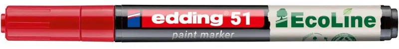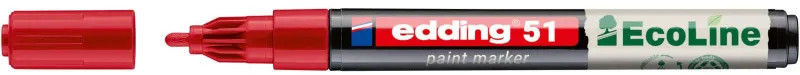 Маркер промышленный лаковый Edding красный 1-2 мм (4-51-002)Лаковый маркер Edding 51 - универсальное средство маркировки для применения в быту, производстве, добыче, промышленности. Чернила этого маркера отличаются высокой укрывистостью, насыщенностью цвета и стойкостью к воздействию света, влаги, перепадов температур, кислот, нагрева и других экстремальных условий. Маркер пишет на любых твёрдых материалах (бетон, металл, пластик, дерево, резина и др.). Может применяется для письма на жирных, пыльных, грязных поверхностях. Специальные добавки в составе чернил маркера Edding 51 растворяют масляную плёнку на поверхности письма. Непрозрачные лаковые чернила позволяют делать хорошо заметные надписи густым плотным слоем даже на тёмных поверхностях.Кроме того, маркер Edding 51, благодаря разнообразной палитре цветов и свойствам красящего вещества, широко используется для декоративных и оформительских работ дизайнерами. используется в витражных работах, росписи по дереву и керамике, для других интерьерных работ.