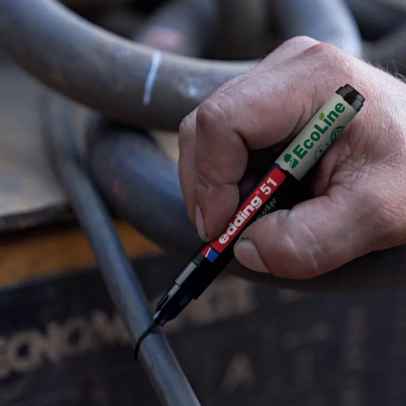 Этот маркер входит в коллекцию экологичных маркеров Edding Eco Line. Чернила маркера Edding 51 — это безопасная для окружающей среды лаковая краска на водной основе без запаха с низким содержанием ЛОС. В её составе нет ксилола и толуола. Кроме того, 85% пластика, использованного для изготовления корпуса маркера произведены из переработанного (вторичного) сырья, что возволяет сокращать выбросы СО2 при его производстве.Прочный наконечник, устойчивый к трению, обеспечивает длительное использование на шероховатых поверхностях. Толщина линии: 2-4 мм. Наконечник маркера может быть заменён по мере истирания. Поток чернил регулируется клапаном.Особенности:- Цвет — белый. Экологичные лаковые чернила на водной основе. Для любых твёрдых поверхностей, в т.ч. влажных или замасленных. Круглый наконечник. Толщина линии: 1-2 мм. Сделано в Германии.
