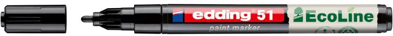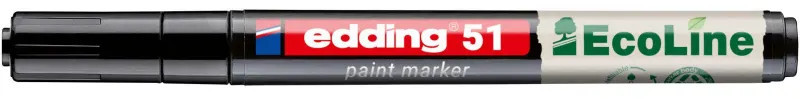 Маркер промышленный лаковый Edding чёрный 1-2 мм (4-51-001)Лаковый маркер Edding 51 - универсальное средство маркировки для применения в быту, производстве, добыче, промышленности. Чернила этого маркера отличаются высокой укрывистостью, насыщенностью цвета и стойкостью к воздействию света, влаги, перепадов температур, кислот, нагрева и других экстремальных условий. Маркер пишет на любых твёрдых материалах (бетон, металл, пластик, дерево, резина и др.). Может применяется для письма на жирных, пыльных, грязных поверхностях. Специальные добавки в составе чернил маркера Edding 51 растворяют масляную плёнку на поверхности письма. Непрозрачные лаковые чернила позволяют делать хорошо заметные надписи густым плотным слоем даже на тёмных поверхностях.Кроме того, маркер Edding 51, благодаря разнообразной палитре цветов и свойствам красящего вещества, широко используется для декоративных и оформительских работ дизайнерами. используется в витражных работах, росписи по дереву и керамике, для других интерьерных работ.