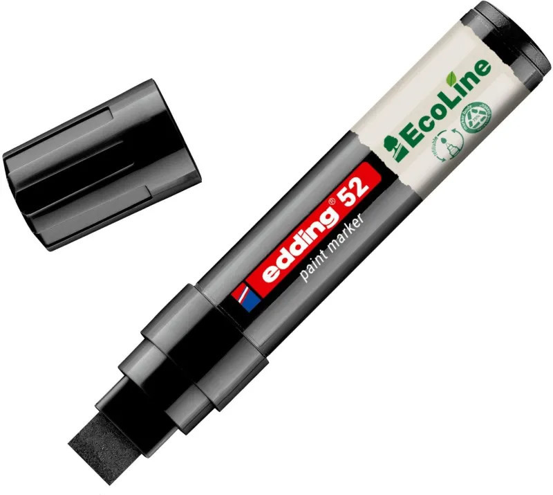 Кроме того, маркер Edding 52, благодаря разнообразной палитре цветов и свойствам красящего вещества, широко используется для декоративных и оформительских работ дизайнерами. используется в витражных работах, росписи по дереву и керамике, для других интерьерных работ.Этот маркер входит в коллекцию экологичных маркеров Edding Eco Line. Чернила маркера Edding 52 — это безопасная для окружающей среды лаковая краска на водной основе без запаха с низким содержанием ЛОС. В её составе нет ксилола и толуола. Кроме того, 85% пластика, использованного для изготовления корпуса маркера произведены из переработанного (вторичного) сырья, что возволяет сокращать выбросы СО2 при его производстве.Прочный наконечник, устойчивый к трению, обеспечивает длительное использование на шероховатых поверхностях. Широкая линия письма: 4-15 мм. Наконечник маркера может быть заменён по мере истирания. Поток чернил регулируется клапаном.