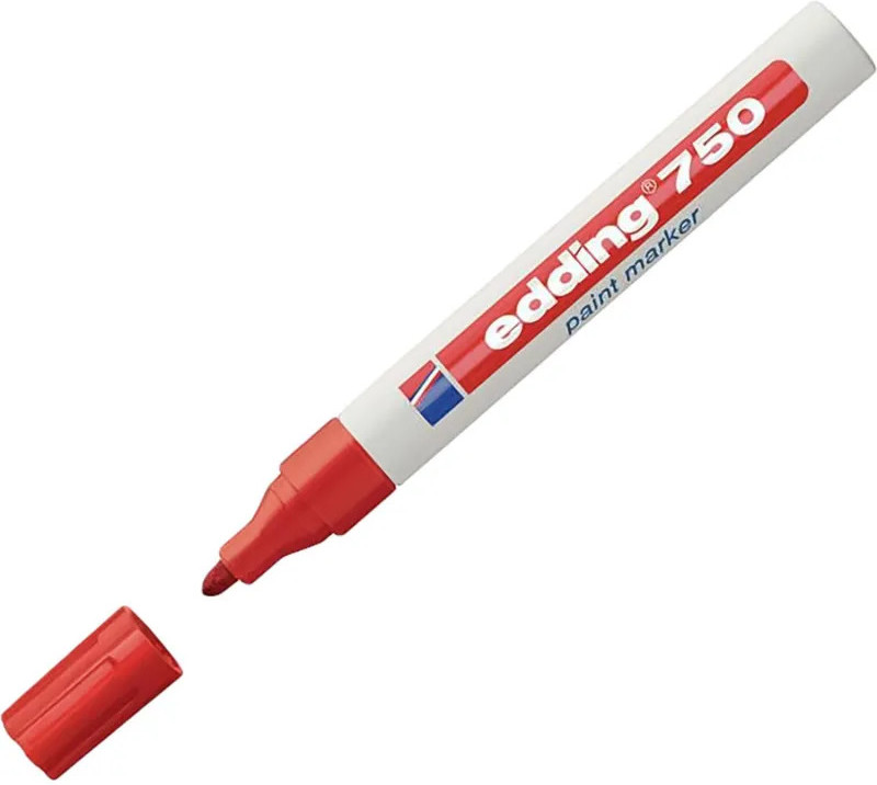 Маркер Edding E 750 имеет упроченный круглый (пулевидный) наконечник. Наконечник маркера может быть заменен по мере истирания. Благодаря тонкому наконечнику маркером может наносится маркировка на небольшие элементы и поверхности. Толщина линии — 2-4 мм. Размеры маркера: диаметр 15 мм, длина 141 мм. Поток чернил регулируется клапаном. Чернила маркера с лакирующим эффектом на основе нитрокраски. Водостойкий, быстро сохнет. Термостойкость надписи до 400 градусов по Цельсию. Надписи цветами 05-010, 049, 054 видимы до 1000 градусов по Цельсию. Маркер Edding E 750 хорошо зарекомендовал себя в работе при перепадах температур от 15 до 30. Промышленный лаковый маркер Edding Е-750 универсален. Используется, например, при нанесении меток на разнородные материалы. При маркировке изделий из резины, пластика, стекла, металла, кабеля, проводов, при нанесении маркировки на товары достаточно одного маркера — Edding E 750. Идеально подходит для маркировки грузов, приборостроения, технологической маркировки. Кроме того, маркер Edding E 750, благодаря разнообразной палитре цветов и свойствам красящего вещества, широко используется для декоративных и оформительских работ дизайнерами. используется в витражных работах, росписи по дереву и керамике, для других интерьерных работ.