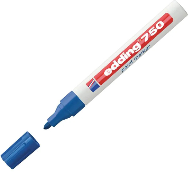 Универсальный маркер Edding 750 используется для промышленной непрозрачной маркировки практически всех материалов, например, стекла, пластика, дерева или металла. Может применяется для письма на жирных, пыльных, грязных поверхностях. Лаковый маркер устойчив к кислотам, растворителям, механическому истиранию, свету. Высококонцентрированный пигмент хорошо ложится на гладкие и шероховатые поверхности. Специальные добавки, введенные в состав маркера Edding E 750 растворяют, масляную пленку на поверхности письма. Непрозрачные лаковые чернила позволяют делать хорошо заметные надписи густым плотным слоем даже на темных поверхностях. Корпус промышленного маркера изготовлен из алюминия.