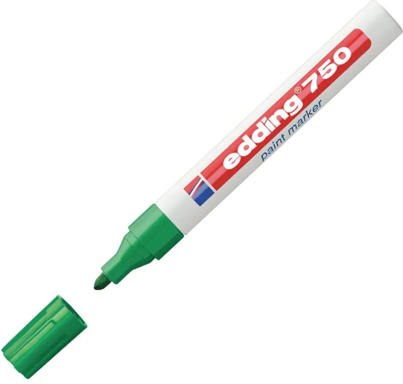 Универсальный маркер Edding 750 используется для промышленной непрозрачной маркировки практически всех материалов, например, стекла, пластика, дерева или металла. Может применяется для письма на жирных, пыльных, грязных поверхностях. Лаковый маркер устойчив к кислотам, растворителям, механическому истиранию, свету. Высококонцентрированный пигмент хорошо ложится на гладкие и шероховатые поверхности. Специальные добавки, введенные в состав маркера Edding E 750 растворяют, масляную пленку на поверхности письма. Непрозрачные лаковые чернила позволяют делать хорошо заметные надписи густым плотным слоем даже на темных поверхностях. Корпус промышленного маркера изготовлен из алюминия.