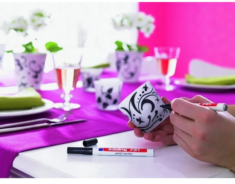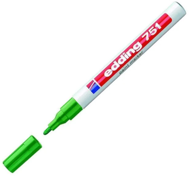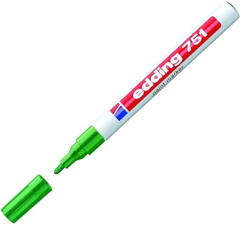 Универсальный маркер Edding 751 используется для промышленной непрозрачной маркировки практически всех материалов, например, стекла, пластика, дерева или металла. Может применяется для письма на жирных, пыльных, грязных поверхностях в индустриальных условиях. Лаковый маркер устойчив к кислотам, растворителям, механическому истиранию, свету. Высококонцентрированный пигмент хорошо ложится на гладкие и шероховатые поверхности. Специальные структуры, введенные в состав маркера Edding E 751, растворяют масляную пленку на поверхности письма, что дает яркую устойчивую надпись. Непрозрачные лаковые чернила позволяют делать хорошо заметные надписи густым плотным слоем даже на темных поверхностях. Корпус промышленного маркера изготовлен из алюминия. Маркер Edding E 751 имеет упроченный круглый (пулевидный) наконечник. Наконечник маркера может быть заменен по мере истирания.