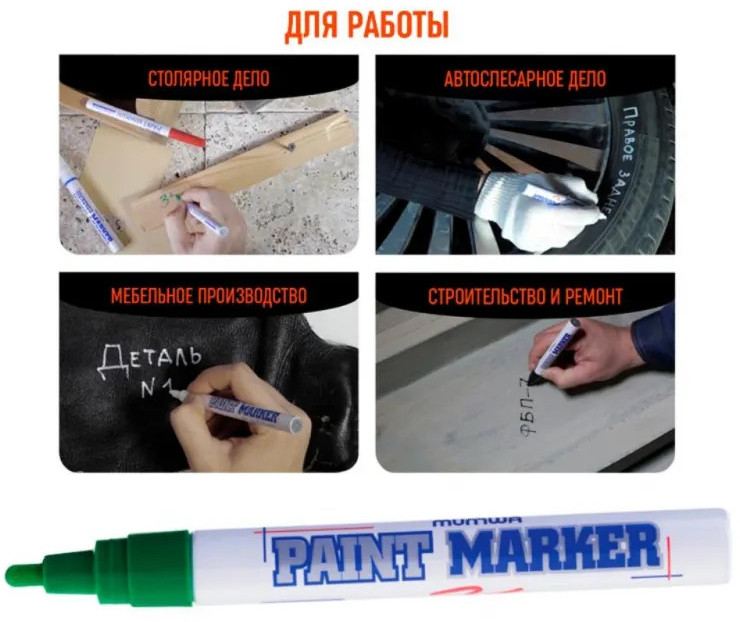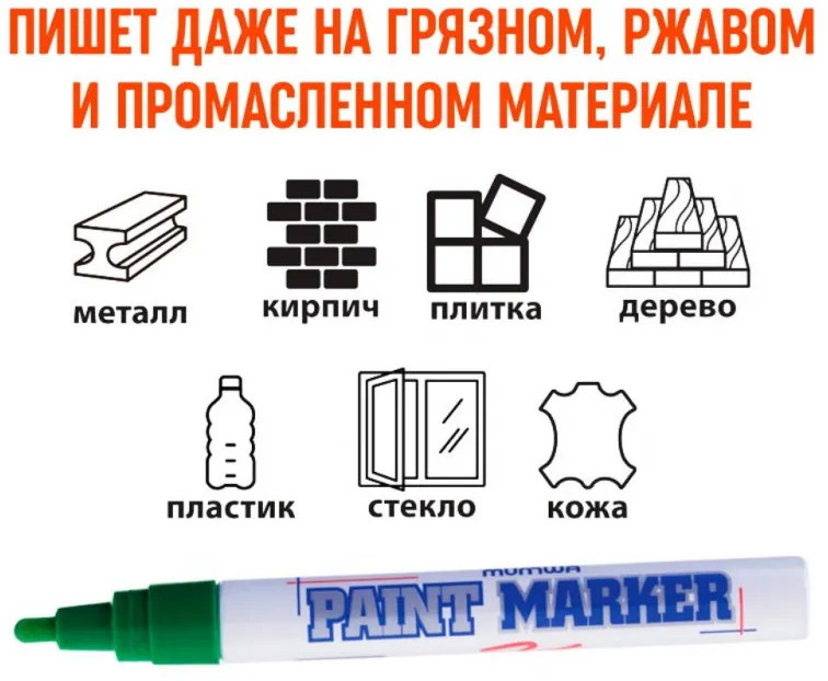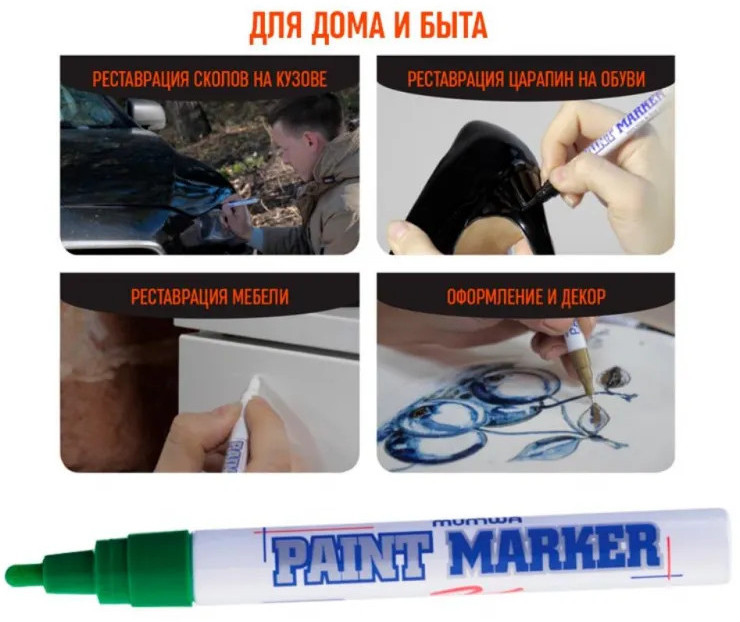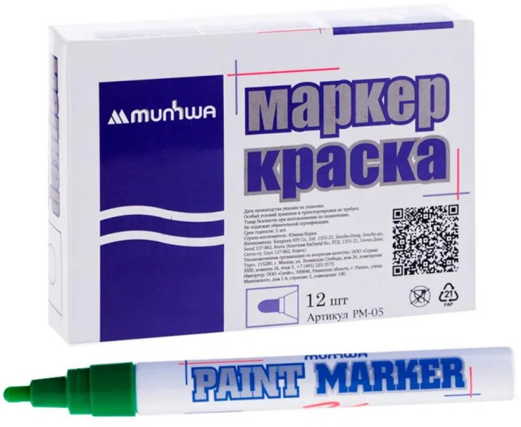 Маркер-краска MunHwa — профессиональный лаковый маркер на нитрооснове. Paint Marker MunHwa пишет на всех типах поверхностей: металл, дерево, резина, бетон, стекло, кожа. Размеры маркера: диаметр 15 мм, длина 144 мм. Paint Marker подходит для реставрации дефектов на бытовой технике, обуви, кузове автомобиля, а также надписей на каменных плитах. Маркер-краска MunHwa имеет широкое применения в дизайне, декорировании и оформлении. Корпус маркера изготовлен из прочного алюминия. Клапанный механизм пишущего узла исключает растекание и разбрызгивание краски, преждевременное пересыхание маркера, срок годности 5 лет. Благодаря высококачественным чернилам, краска ложиться на поверхность равномерным и однородным слоем, полностью закрашивая обрабатываемую поверхность, быстро сохнет. После высыхания, надписи обладают свето- и водостойкостью, термостойкостью, устойчивостью к механическим воздействиям.