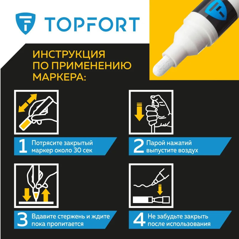 Предостережения: плотно закрывайте колпачок после применения, держать маркер вдали от источников тепла и воспламенения.