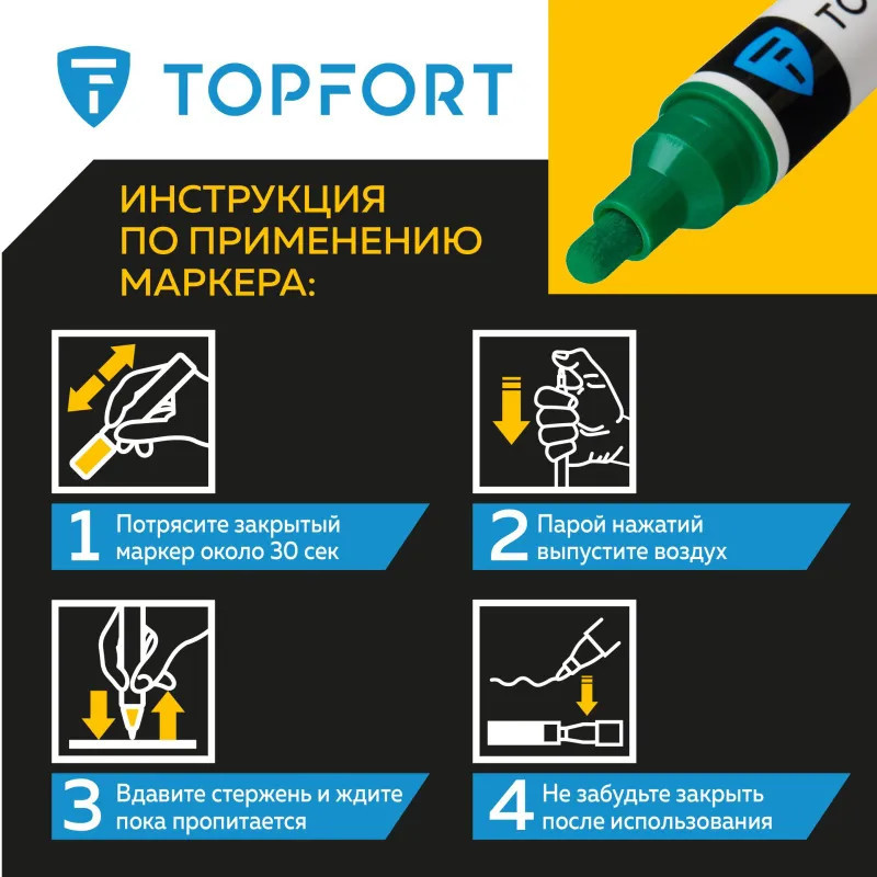 Предостережения: плотно закрывайте колпачок после применения, держать маркер вдали от источников тепла и воспламенения.