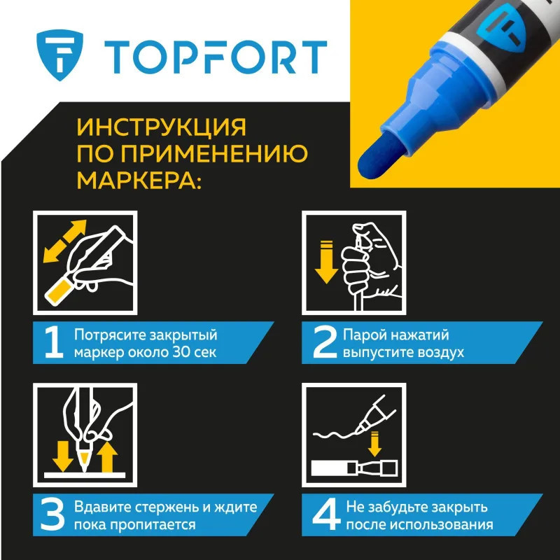 Предостережения: плотно закрывайте колпачок после применения, держать маркер вдали от источников тепла и воспламенения.