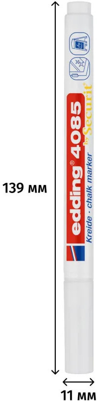 Меловой маркер Edding 4085 предназначен для нанесения рисунков и надписей на гладкие поверхности, такие как стекло, кафель, пластик, меловые доски (в том числе черные). Легко стираются влажной салфеткой. Чернила этого маркера — ни что иное как жидкий мел на водной основе без каких-либо примесей, поэтому данный маркер прекрасно подходит для детей. Edding 4085 — отличный инструмент для воплощения творческих идей дома, но так же рекомендуется для использования в офисах, ресторанах, стекольной и других видах промышленности. Уникальная особенность серии Edding 4085 — наличие необычных цветов и тонкая линия письма — всего 1-2 мм, что является большой редкостью для меловых маркеров. Форма наконечника: круглая.