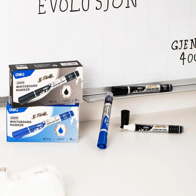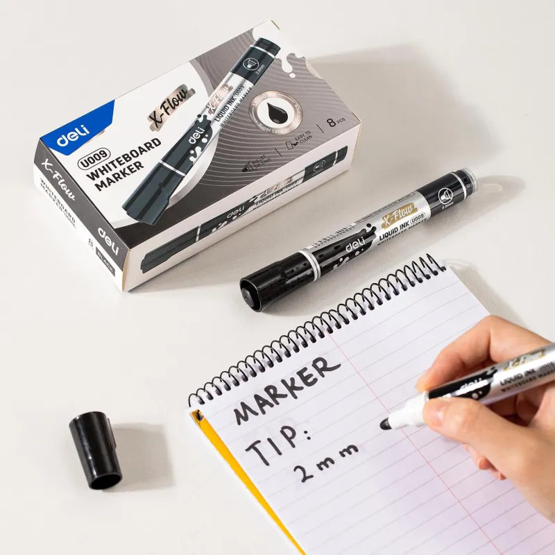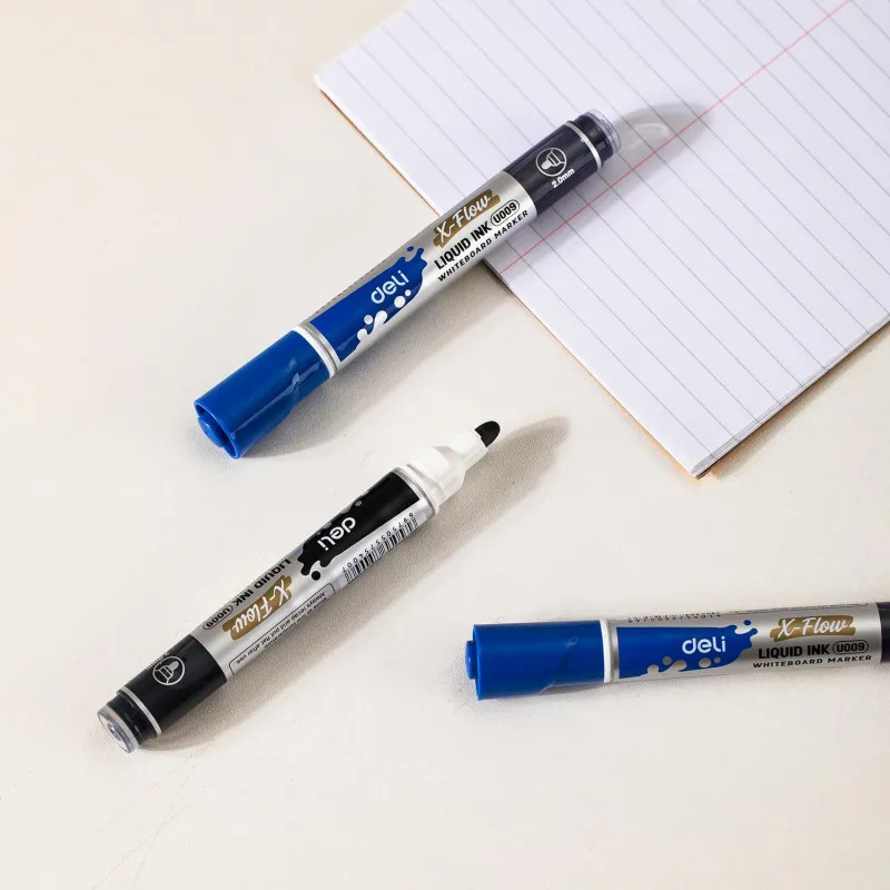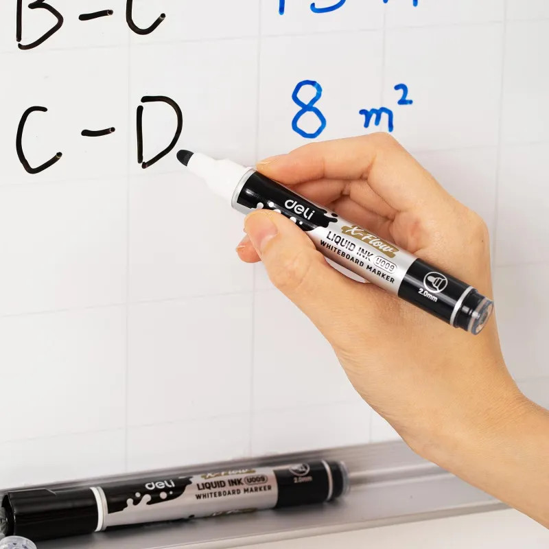 💳 Оплатить за товар можно при получении 🇰🇿 Есть бесплатная доставка по Казахстану от 1 дня 🎁 Копите бонусы с каждой покупки Высококачественный маркер для белой доски Deli X-flow предназначен для повседневного использования. Идеально подходит для маркерных досок, магнитного планера, многоразовых раскрасок и прописей, расписания уроков, планинга, трекера привычек. Круглый наконечник имеет толщину линии письма от 1.5 мм до 3 мм, что обеспечивает удобство при работе с текстом ли таблицами на доске, а удобный и надежный колпачок облегчит хранение. Эластичный наконечник обладает повышенной износостойкостью и обеспечивает экономный расход чернил. Маркер пишет ярко и сочно. Маркер абсолютно безопасен для Вашего здоровья и окружающей среды. Маркер для доски обладает круглым пластиковым корпусом серебристого цвета. Корпус произведен из экологичного пластика, созданного из переработанного сырья, что позволяет бережно относиться к природе. Маркер для белых досок легко стирается не оставляет следов на поверхности. Маркер канцелярский не перезаправляется. Цвет колпачка с клипом соответствует цвету чернил. Снятый колпачок не потеряется благодаря тому, что во время работы его можно надевать на верхнюю часть маркера. Маркер для доски используют в каждом офисе, детском саду, школе, медицинских центрах. Будет прекрасным и нужным подарком для учителя, врача, офисного работника. |