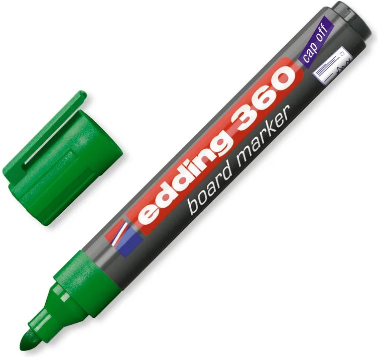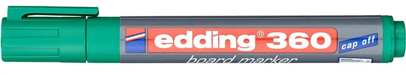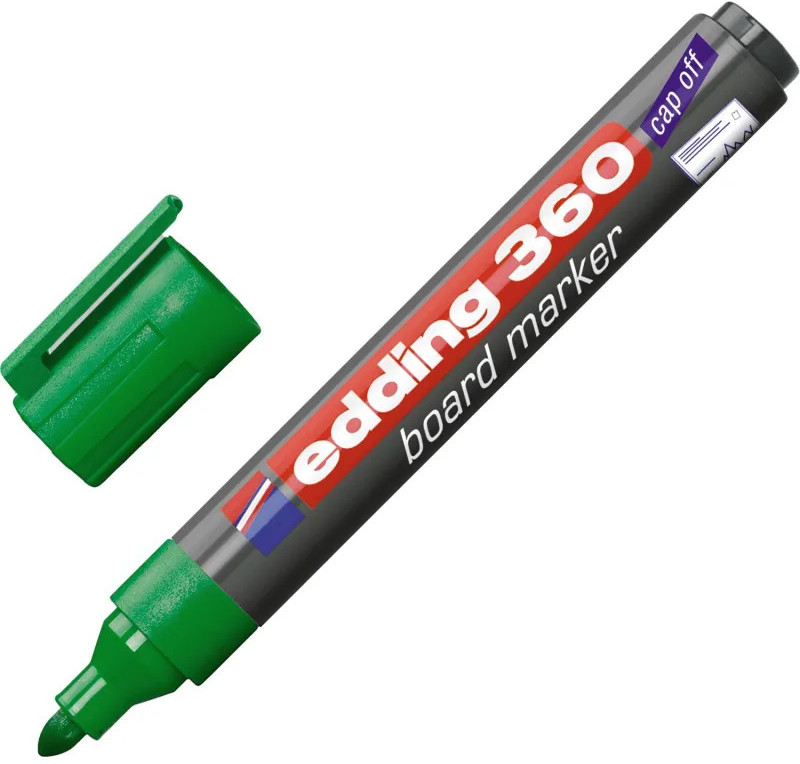 Маркер Edding 360 предназначен для письма на магнитно-маркерных досках и флипчартах. Оснащён круглым наконечником, корпус выполнен из прочного пластика. Толщина линии письма — 1.5-3 мм. Надписи легко стираются сухой губкой. Чернила на спиртовой основе обеспечивают яркий, чёткий след.