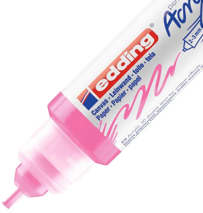 Маркер акриловый Edding 3D 5400/069 двухсторонний розовый (толщина линии 2-10 мм). Двусторонний 3D-маркер позволяет создавать настоящие объёмные рисунки. Слегка надавите на корпус — и волшебство начинается! Сильнее нажим — объёмнее линия. Двусторонняя трубка имеет два сопла с шириной хода 2-3 мм и 5-10 мм. 3D-маркер Edding 5400 — яркий представитель акриловой линейки Edding. Акриловые маркеры Edding — целый набор инструментов для живописи. Чернила содержат высокопигментированную светостойкую и перманентную акриловую краску на водной основе. Созданы для рисования как на бумаге или картоне, так и на холсте. Вы получите эффект настоящих красок, но в более удобной форме маркера. Цвет: флуоресцентный розовый.