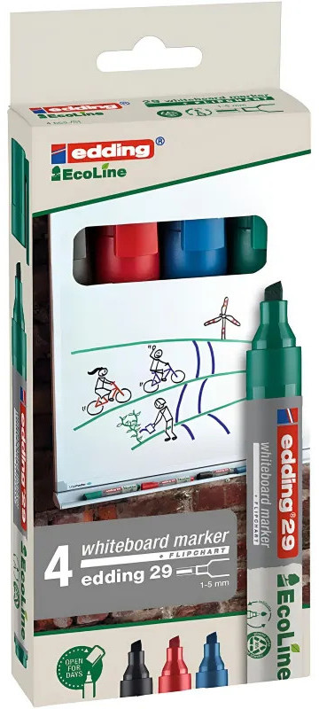 Edding Набор маркеров для белых досокВ данный момент этот товар отсутствует в продаже. Возможно, у нас найдется аналогичный или похожий товар здесь. Набор маркеров для досок Edding 29. Маркер на 90% произведен из вторичного переработанного пластика. Если после насыщенной презентации или лекции вы забудете закрыть маркер колпачком, не стоит беспокоиться: чернила не высохнут даже спустя несколько дней. Маркер можно повторно заправлять и использовать много раз, и это делает его не только экологичным, но и экономически эффективным, что особенно актуально для офисов или образовательных учреждений. Чернила на спиртовой основе. Размеры маркера: диаметр 16 мм, длина 138 мм. Обращаем ваше внимание, что в зависимости от партии внешний вид коробки и маркеров может отличаться от изображенного. |