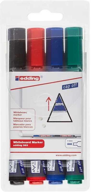 💳 Оплатить за товар можно при получении 🇰🇿 Есть бесплатная доставка по Казахстану от 1 дня 🎁 Копите бонусы с каждой покупки Набор маркеров для досок Edding 363/4S с технологией «cap off». Данные маркеры можно использовать на магнитно маркерных досках, а так же на флипчартах. Скошенный наконечник. Пластиковый корпус. |