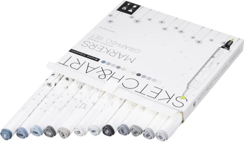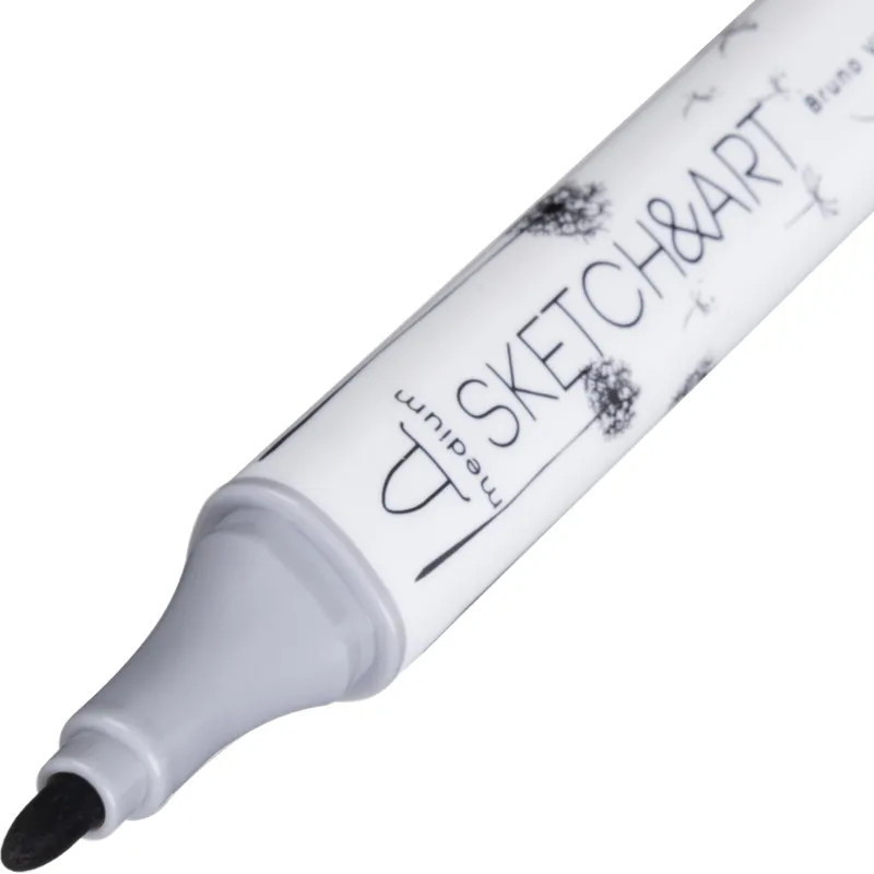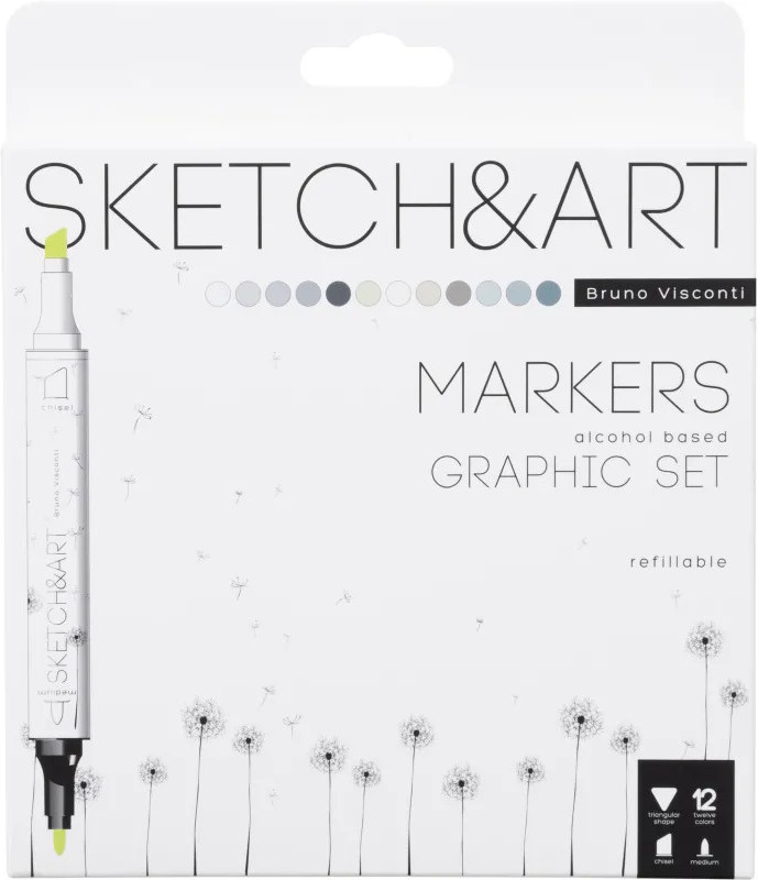 Sketch & Art Набор двусторонних скетч-маркеров «Графика»В данный момент этот товар отсутствует в продаже. Возможно, у нас найдется аналогичный или похожий товар здесь. Высококачественные профессиональные маркеры Sketch&Art предназначены для рисования, набросков, дизайнерских работ. В наборе 12 цветов, специально подобранных под тему. Эргономичный трёхгранный корпус из полипропилена — лёгкий и ударопрочный. Плотно защёлкивающиеся колпачки обеспечивают долгую сохранность чернил от высыхания, а рельефное нанесение в форме точек на их поверхность предотвращает скольжение руки при открывании. Маркер имеет два наконечника из износостойкого волокна — пулевидный с шириной линии 1 мм и скошенный, позволяющий варьировать ширину линии от 1 до 5 мм. Перманентные чернила на спиртовой основе не токсичны и быстро сохнут на поверхности, оставляя яркий след. Возможность многократно заправлять чернилами маркер значительно продлевает срок его службы. Маркеры хорошо ложатся на бумагу разной фактуры и плотности. Более гладкая бумага даёт больше простора для смешения цветов и создания градиентов. Также этот художественный материал можно использовать для создания рисунков и на стекле, и на светлом пластике, предварительно обезжирив их поверхность. Стойкость и яркость цвета гарантированы. Следы от маркеров легко отстирываются и отмываются с помощью моющих средств. Маркеры упакованы в картонную упаковку с приятным бархатистым покрытием Soft Touch и узнаваемым дизайном всей линейки Sketch&Art. Для комфортного открывания верхний клапан упаковки снабжён специальным язычком. Цвета в наборе: белый, серый, светло-серый, нежно-серый, тёмно-серый, серый, светло-серый, нежно-серый, тёмно-серый, голубой, тёмно-зелёный. |