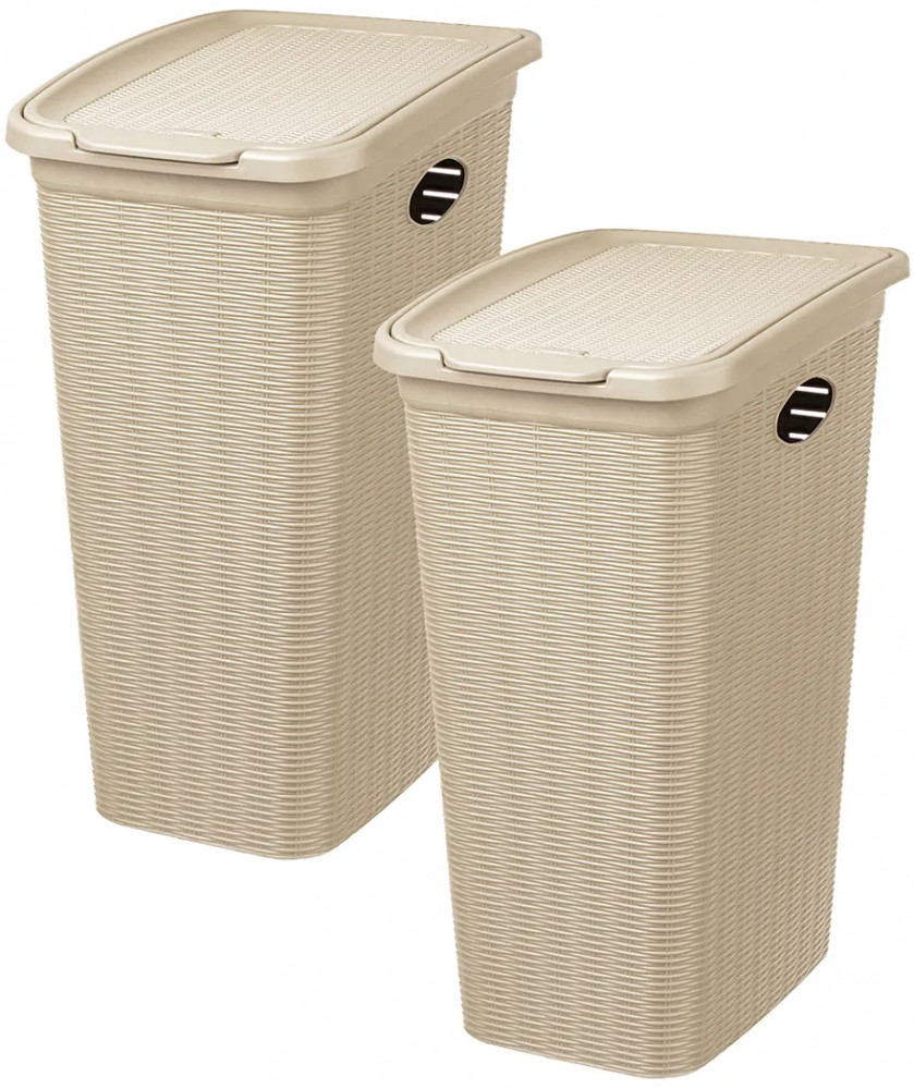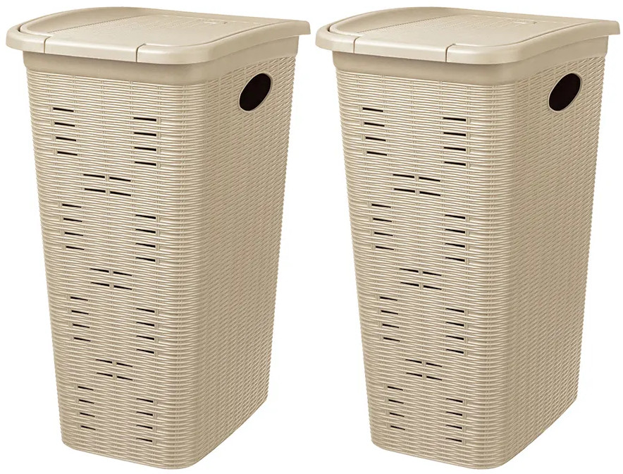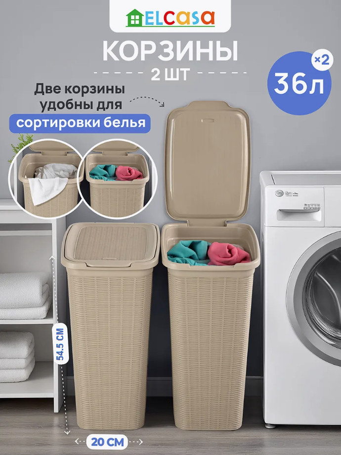 Набор 2 бельевых корзин с крышкой от El Casa предназначен для организации хранения в вашем доме. Размер каждого изделия — 39×28,5×54,5 см, объём — 36 литров. Размер дна — 29×20 см. Выполнены из полипропилена — прочного пластика, который не содержит бисфенол А и другие вредные вещества. Благодаря своему лаконичному, но изысканному внешнему виду изделия впишутся в любой интерьер и найдут место в любой части вашего дома. Оснащены удобными крышками, надёжно закрывающими содержимое.