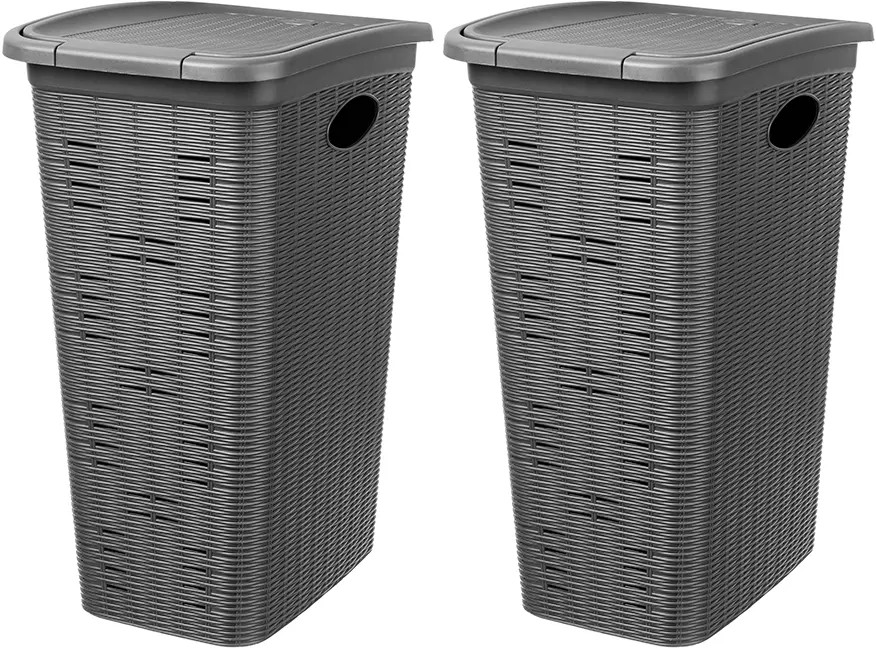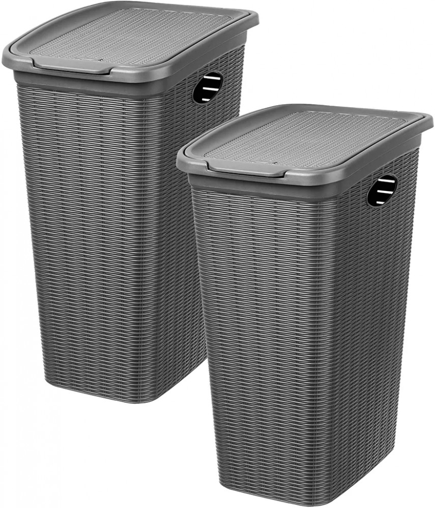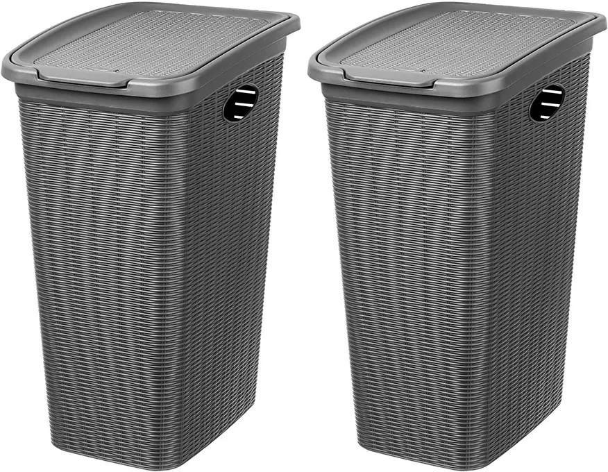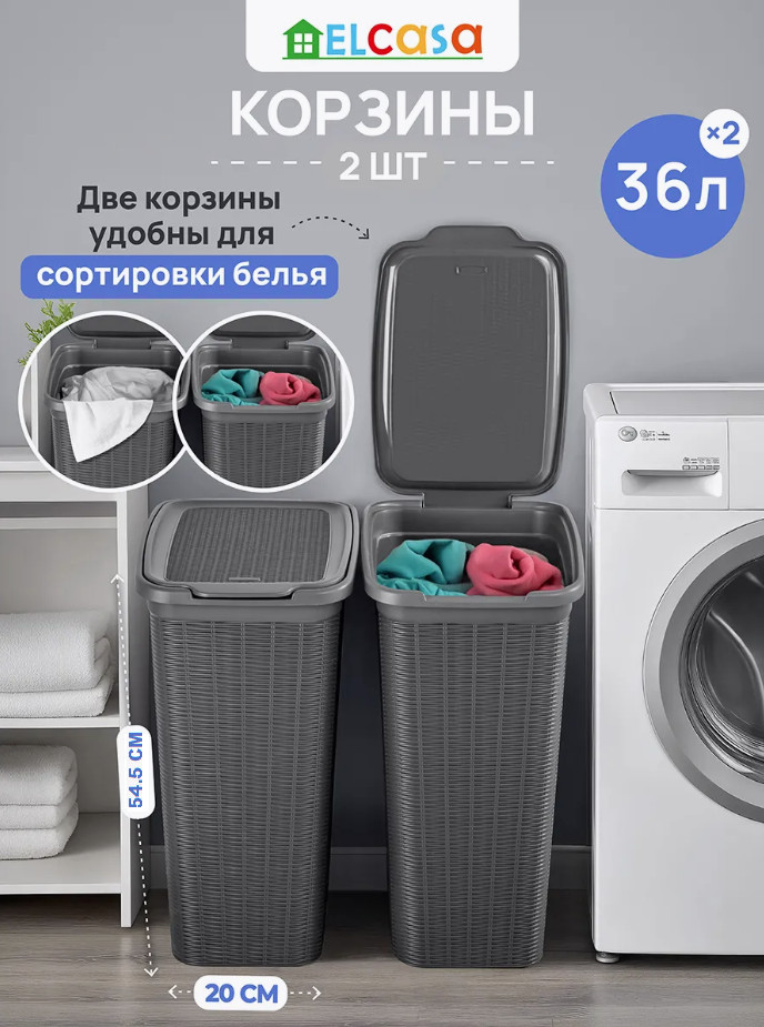 Набор 2 бельевых корзин с крышкой от El Casa предназначен для организации хранения в вашем доме. Размер каждого изделия — 39×28,5×54,5 см, объём — 36 литров. Размер дна — 29×20 см. Выполнены из полипропилена — прочного пластика, который не содержит бисфенол А и другие вредные вещества. Благодаря своему лаконичному, но изысканному внешнему виду изделия впишутся в любой интерьер и найдут место в любой части вашего дома. Оснащены удобными крышками, надёжно закрывающими содержимое.