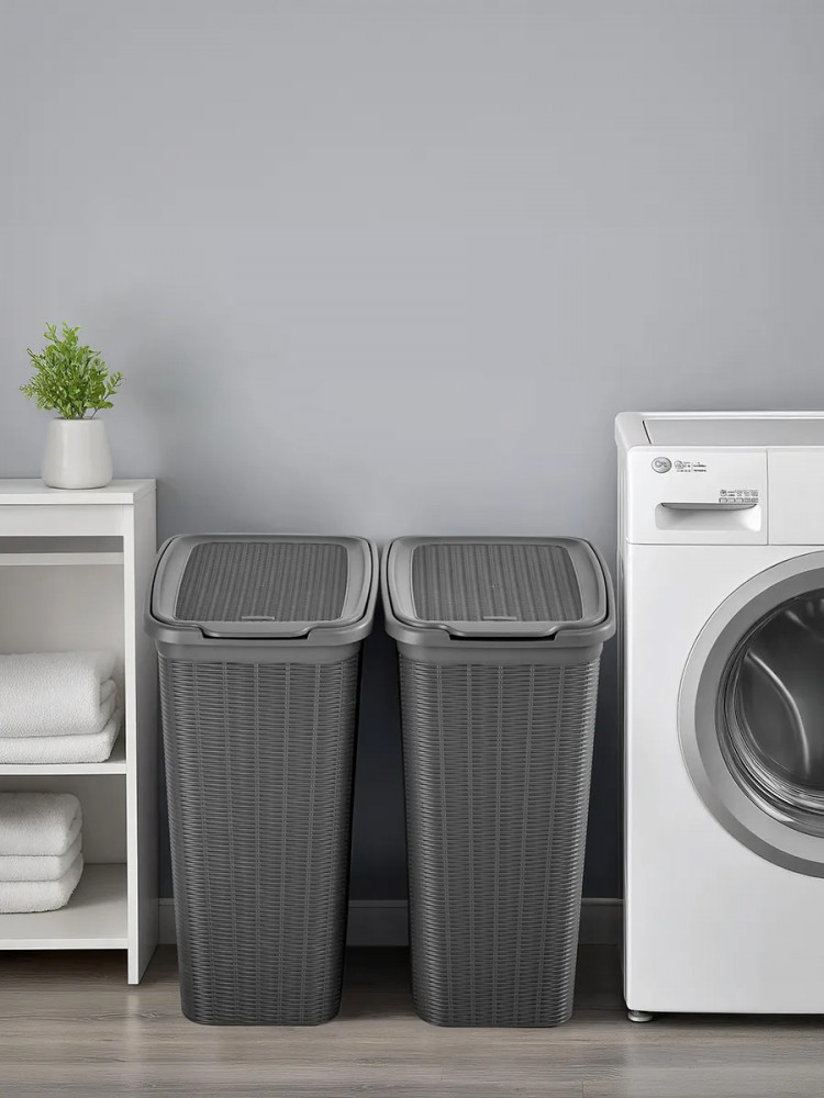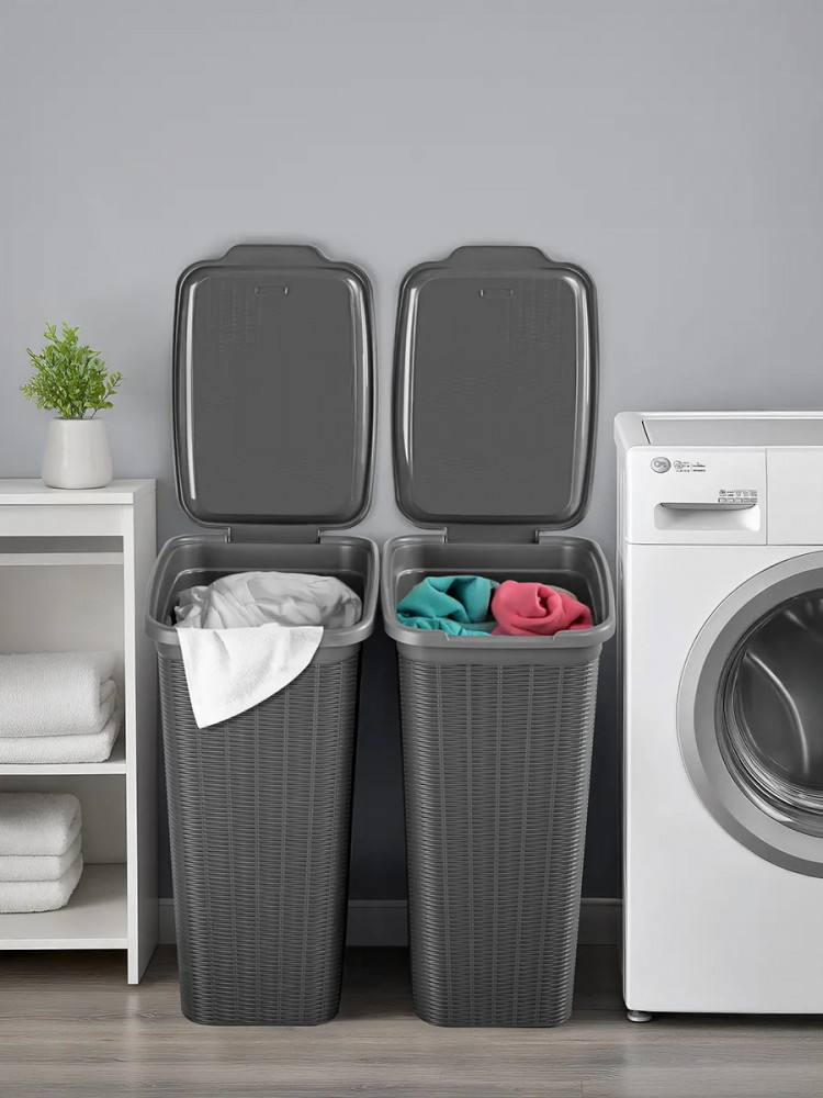 Контейнеры идеально подходят для хранения вещей перед стиркой. Они помогут заранее сортировать одежду, полотенца, наволочки, постельное бельё и другие текстильные изделия. С ними вы легко организуете практичную систему хранения вещей. Разместите их рядом со стиральной машинкой, под раковиной в ванной комнате, а также в шкафу. Вместительные корзинки также послужат в роли универсальных органайзеров для хозяйственных принадлежностей, детских игрушек и предметов для рукоделия. Малый вес корзин и удобные ручки позволят перемещать их по всему дому.