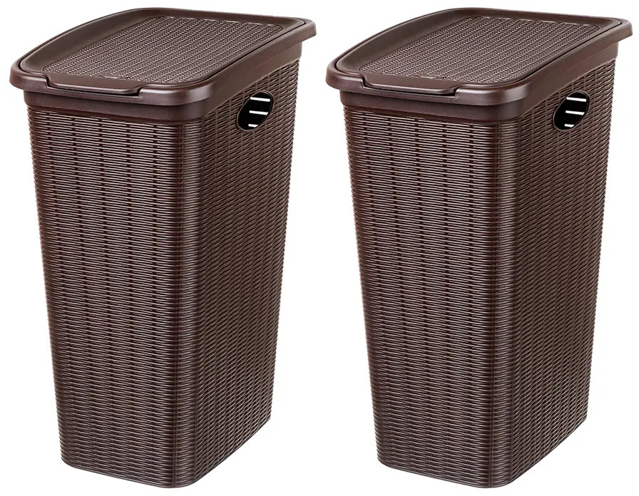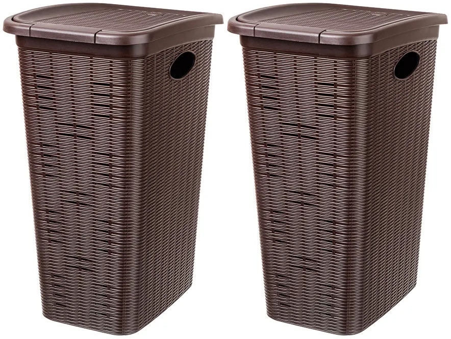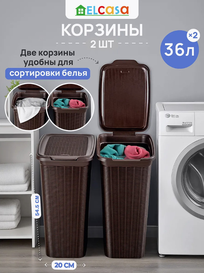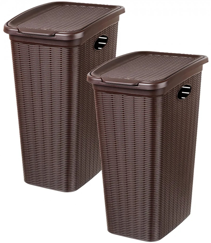 Набор 2 бельевых корзин с крышкой от El Casa предназначен для организации хранения в вашем доме. Размер каждого изделия — 39×28,5×54,5 см, объём — 36 литров. Размер дна — 29×20 см. Выполнены из полипропилена — прочного пластика, который не содержит бисфенол А и другие вредные вещества. Благодаря своему лаконичному, но изысканному внешнему виду изделия впишутся в любой интерьер и найдут место в любой части вашего дома. Оснащены удобными крышками, надёжно закрывающими содержимое.