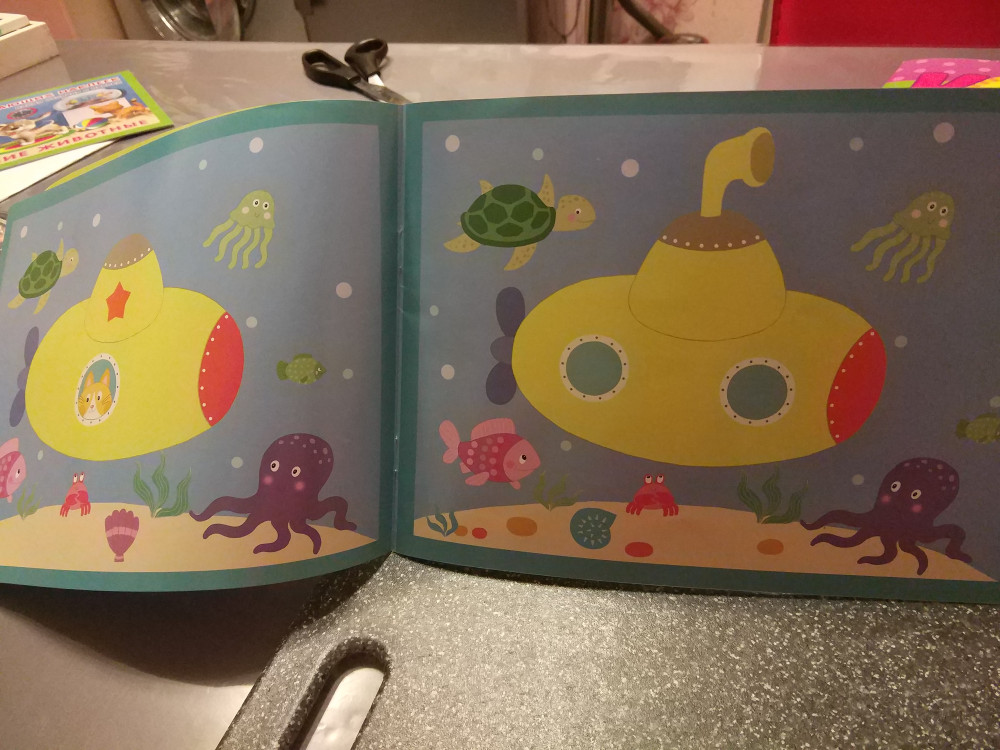 Книга интересная, листы глянцевые. Семь разворотов с парными картинками для сравнения, и один разворот с наклейками. Наклеек много, некоторые мелкие. Необходимо сравнить картинки и доклеить недостающие элементы. Рекомендую для детей от трех лет. Если наклейку приклеили неправильно, то можно будет аккуратно оторвать и переделать.
