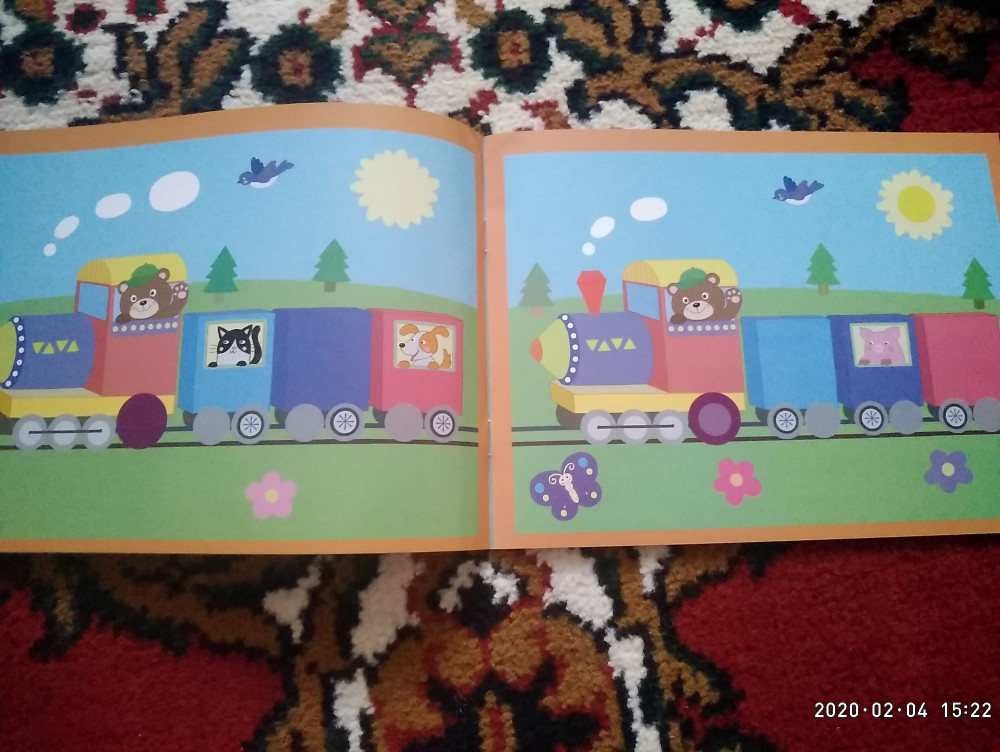 могли бы не менять дизайн лицевой книжки ... у меня сын заполнил лицевую сторону книжки и каждый день просил "паровоз кружочки" так долго ждал доставку... каждый день меня спрашивал про книжки ... теперь получив с другой картинкой на лицевой ... думаю что содержание не поменялся...