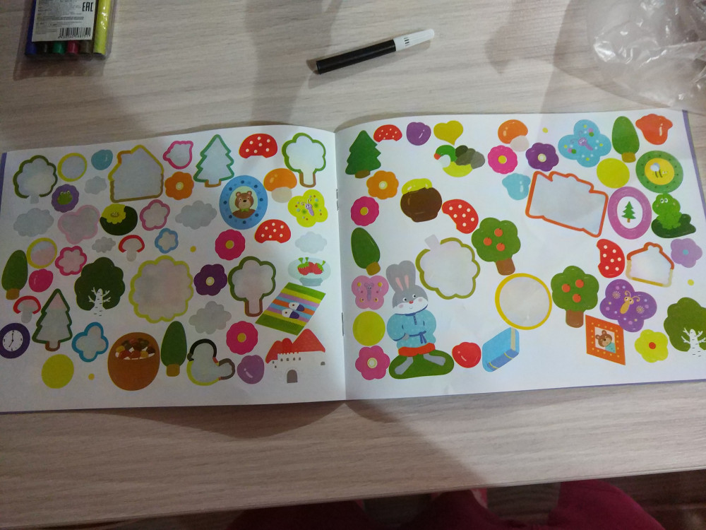 Столько много наклеек в этой книжке, за один раз не наклеишь, нам понравилось с дочей. Доче 2 годика. Развивает книжка внимательность.
