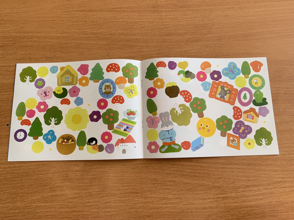 Красивые, яркие, красочные иллюстрации. Нравится искать и клеить наклейки. Занимаемся с удовольствием.