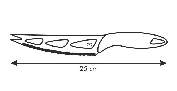 Tescoma Нож для сыра «Presto» (14 см)В данный момент этот товар отсутствует в продаже. Возможно, у нас найдется аналогичный или похожий товар здесь. Серия: Presto Нож для сыра имеет тонкое прямое лезвие, слегка изогнутое к острию. Кончик ножа раздвоен в виде «вилочки», которой удобно переносить ломтики сыра с доски на тарелку. Режущая кромка ножа с мелкими зубчиками, а лезвие имеет на режущей плоскости равномерно расположенные сквозные полости. При резке в них образуются воздушные «кармашки», позволяющие избежать прилипания сыра к лезвию и деформации формы ломтика. |
