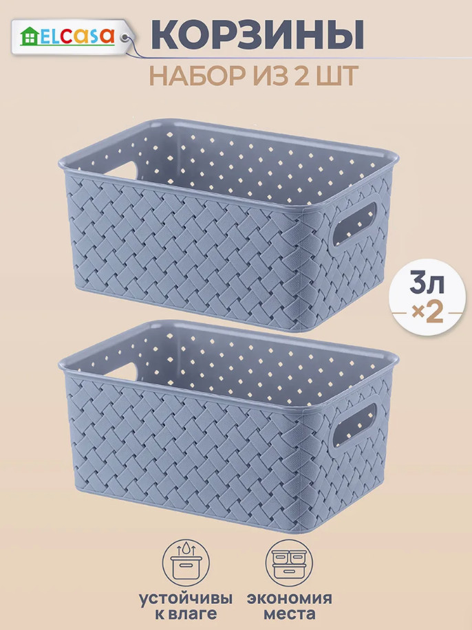 Корзинка от El Casa дымчато-синего цвета предназначена для организации хранения вещей в вашем доме. Размер изделия — 23,5×17,3×10,5 см, объём — 3 литра. Размер дна — 21×14,5 см. Универсальный дизайн и благородный цвет добавят стиля вашему интерьеру. Органайзер выполнен из полипропилена и станет незаменимым помощником для поддержания порядка в гардеробной, комнате или на кухне. Преимущество данного материала над обычным пластиком в том, что он лёгкий по весу и наиболее безопасный для здоровья.