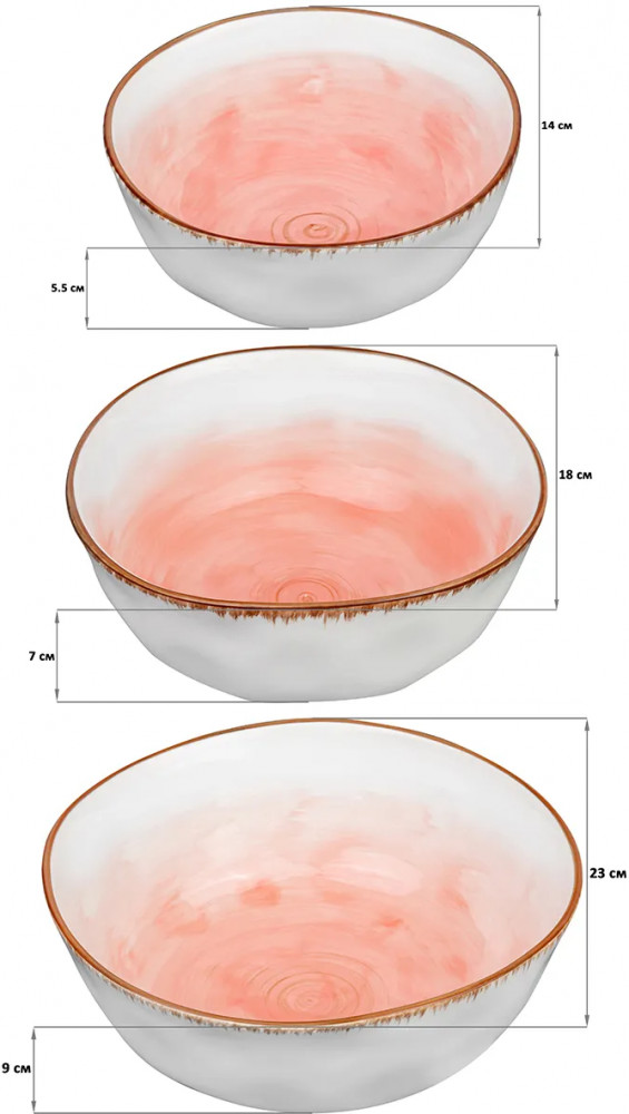Набор состоит из 3 салатников-суповых тарелок Elan Gallery серии «Кантри» объемом 500 мл, 1 л, 2,2 л. Каждый салатник имеет удобный размер и большой объем, что позволяет вместить достаточное количество пищи. Набор глубоких салатников подойдет для красивой сервировки стола и станет эстетичным дополнением сервиза. Сервировочные салатники могут быть использованы для подачи различных блюд, включая первое, салаты, супы, бульоны, каши, закуски, сладкое, десерты, овощи, сухофрукты. Салатник можно использовать как пиалу для варенья. Столовые супницы — салатницы для горячего выполнены из высококачественного белого фарфора, обладают интересной необычной геометрией и насыщенным декоративным оттенком.