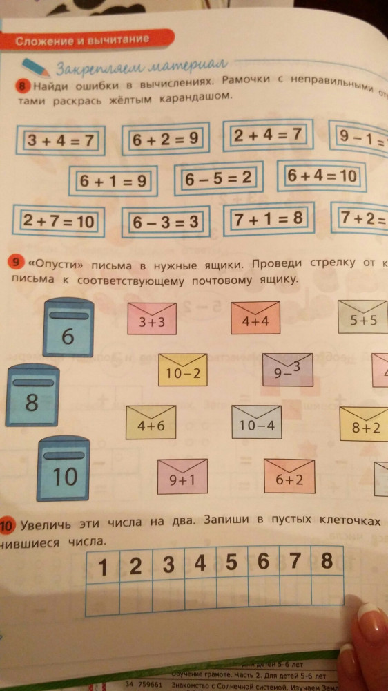 Сама книга мне понравилась. Обучение начинается с цифры 1 и заканчивается 20. Разнообразные задания, в том числе и прописи ( математические). Есть устные задания, ответить на вопросы. Примеры по числовой прямой. Состав числа, соседи цифр, геометрические фигуры, линии, углы, задачи. Книга цветная. В ней 78 рабочих страниц. Очень долго ждала заказ, почти месяц.