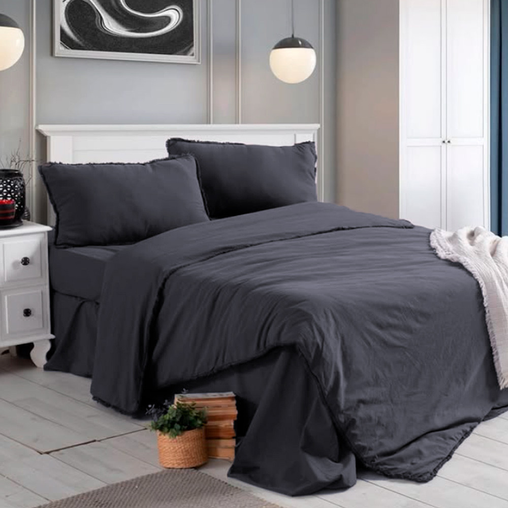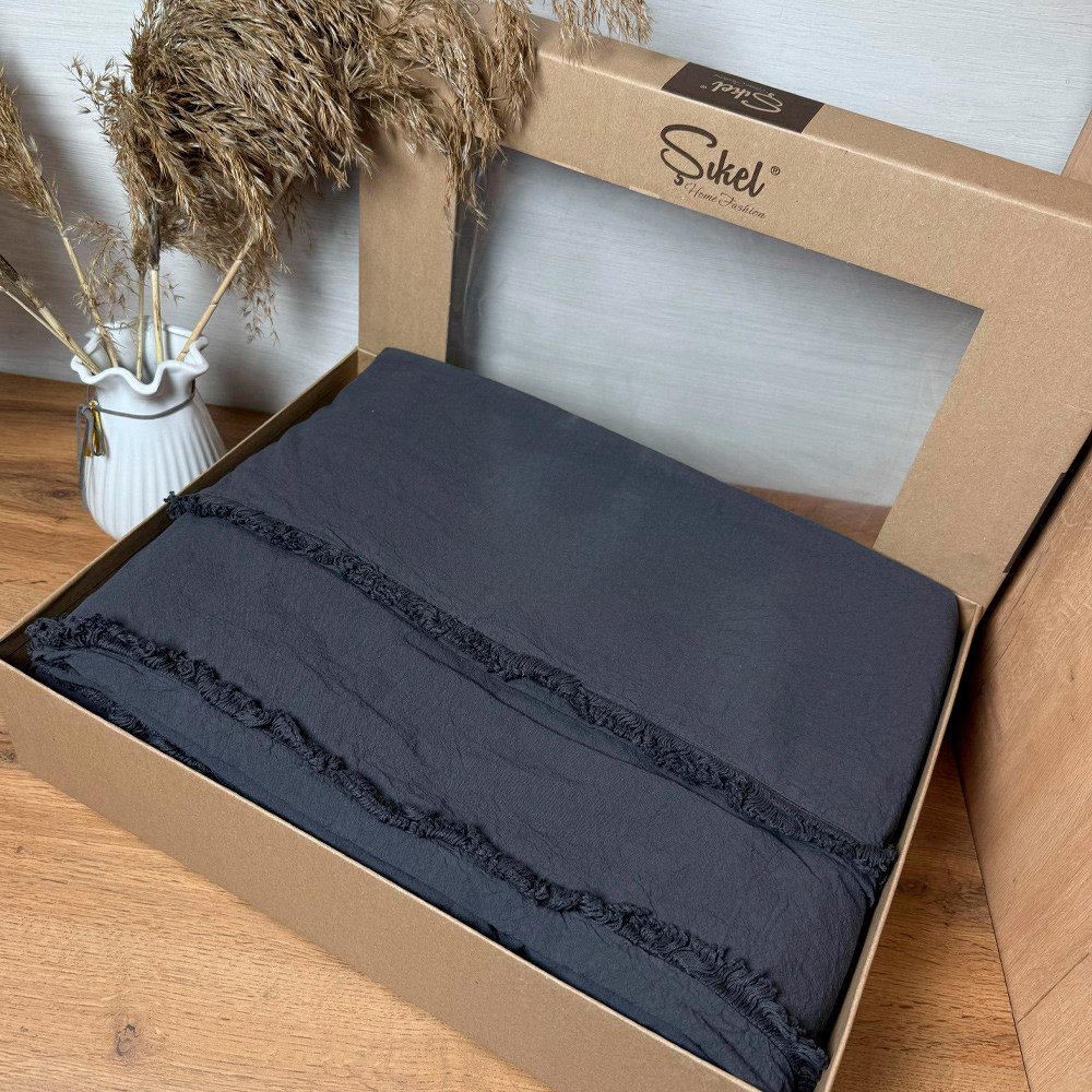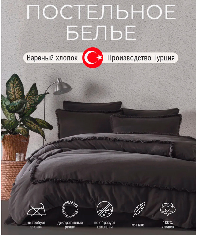 Постельное белье из варёного хлопка от бренда Sikel представляет собой идеальный выбор для тех, кто ценит комфорт и качество. Созданное из 100% натурального хлопка, это белье обеспечивает не только мягкость и прохладу, но и долговечность. Постельное белье евро с бахромой — оно подходит для любого интерьера, добавляя элегантности и уюта вашей спальни. Комплект включает в себя 1 пододеяльник, 1 простыню и 4 наволочки, что делает его идеальным выбором для взрослых. В наборе 2 наволочки с бахромой, и две наволочки с клапаном. Застежка наволочек выполнена в виде клапана, а пододеяльника — пуговицами, обеспечивая удобство использования. Турецкая ткань варёный хлопок плотностью 165 г/м² обеспечивает максимальный комфорт при сне, делая это постельное белье неотъемлемым аксессуаром для создания идеального спального пространства. Комплект постельного белья из вареного хлопка — специально для тех, кто любит мягкость и натуральность, или просто не любит гладить постель.